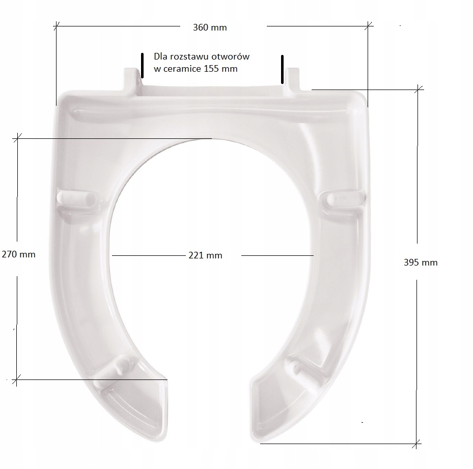 Дошка призначена для U-подібної кераміки Roca, Koło, Cersanit та інші з відстанню петель 155 - 160 мм.