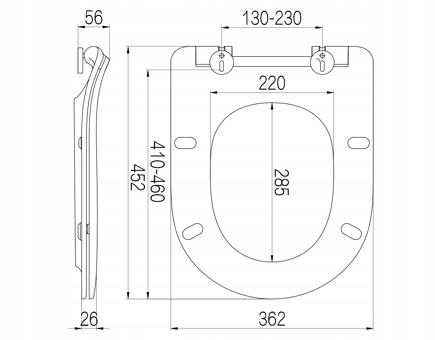 - Регульовані ручки дозволяють відрегулювати сидіння відповідно до розмірів миски. Поворотна петля вставляється в звичайний отвір в унітазі діаметром O 14 мм