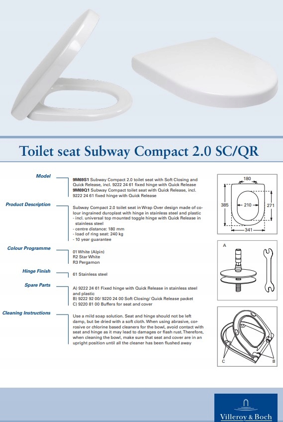 Сидіння для унітазу Villeroy & Boch Subway 2.0 Compact 41x36 см 9M69Q101 nr24