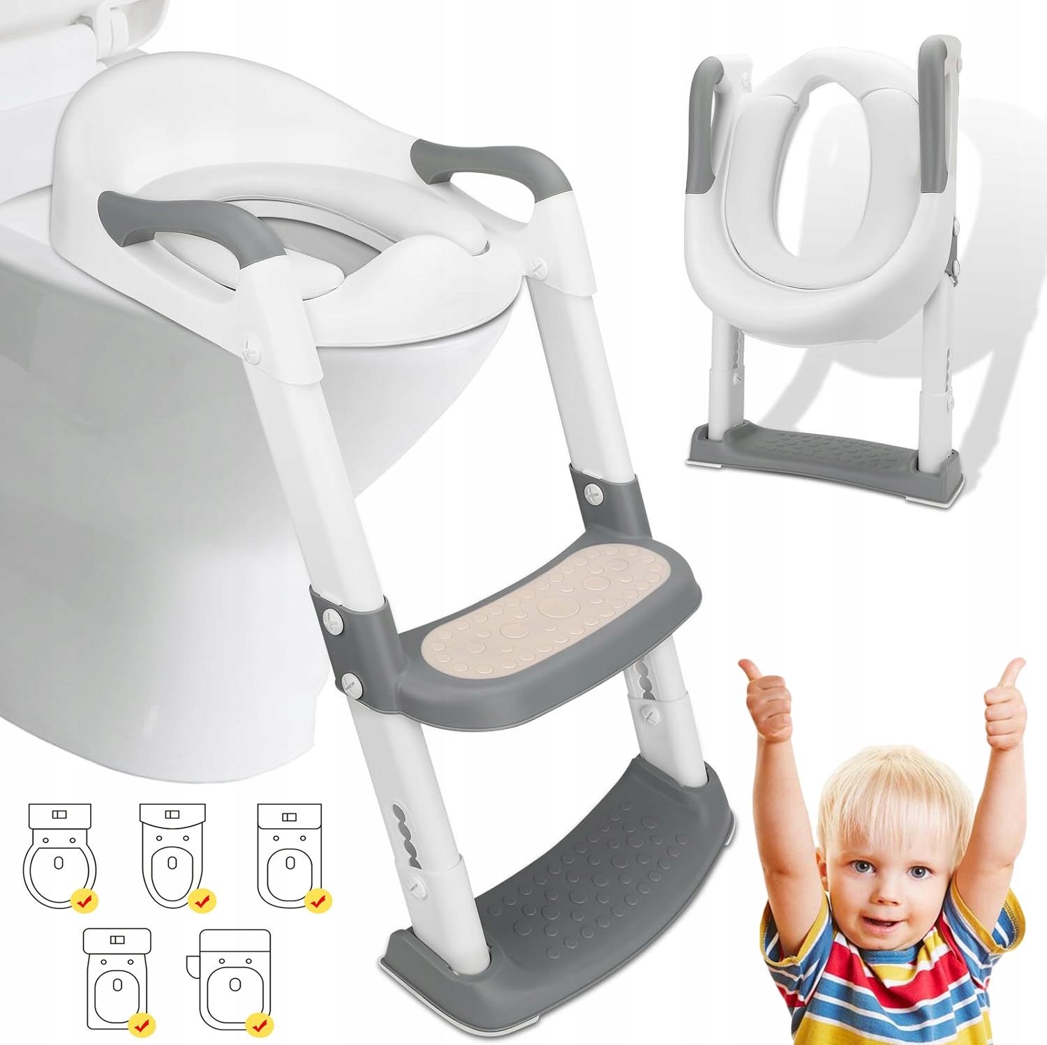 СИДІЛО ДЛЯ УНІТАЗУ З ДРАБИНКАМИ ДИТЯЧЕ, СІРЕ, РЕГУЛЮЄТЬСЯ, ПРОТИ КЛИЗКЕННЯ