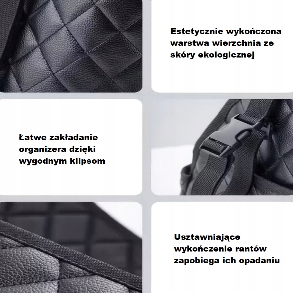 ✔️ Елегантний дизайн - чорна стьобана екологічна шкіра додає класу та стилю салону автомобіля.