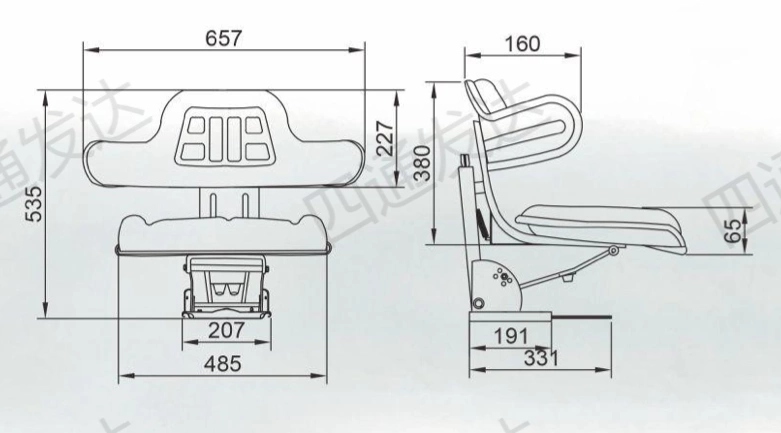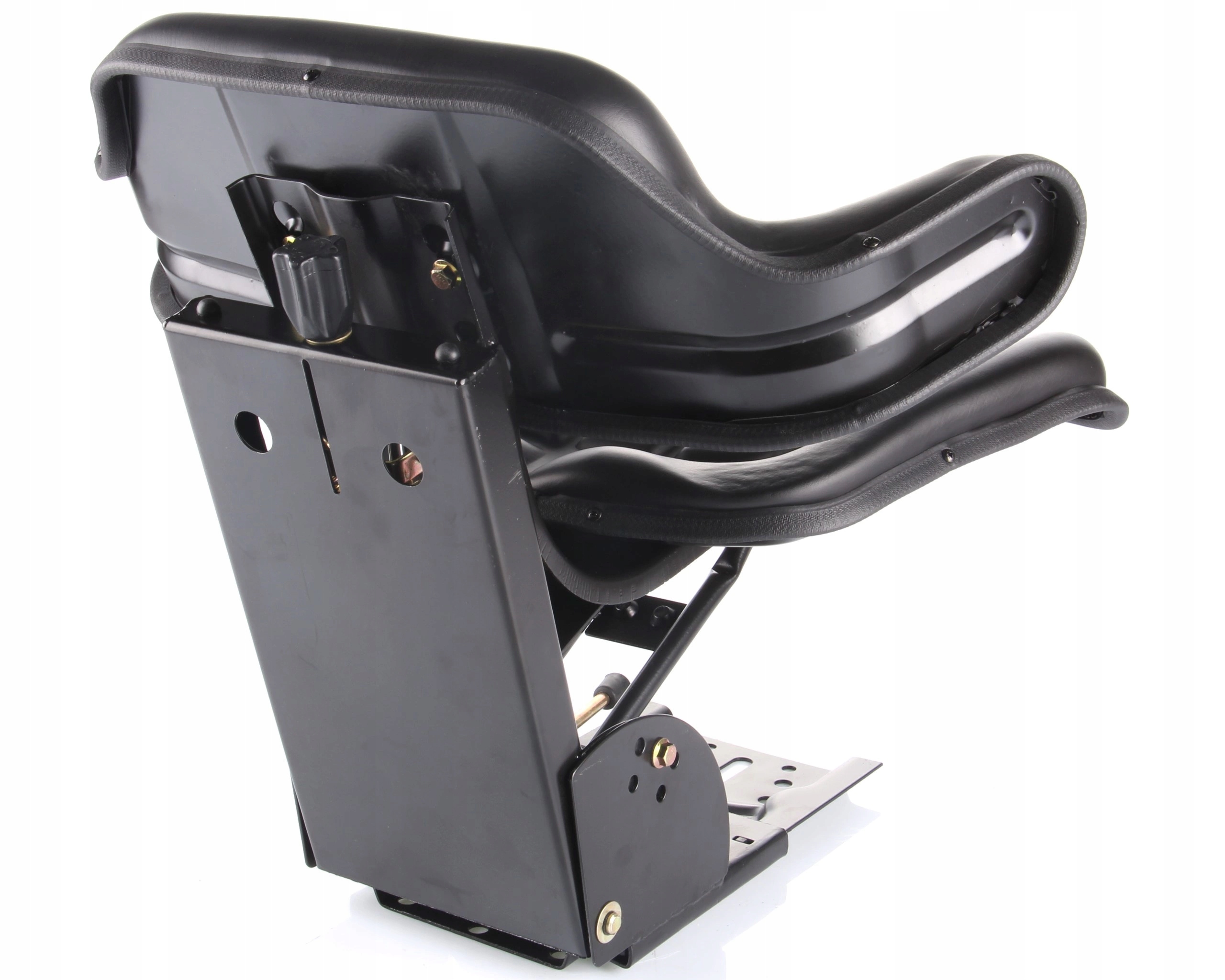 Сидіння для трактора або навантажувача, механічно амортизоване з підлокітниками. Сидіння особливо підходить для тракторів, сільськогосподарської техніки, навантажувачів і будівельної техніки. Має зручні підлокітники, що підвищують комфорт водія. Має регульований рівень амортизації в залежності від ваги оператора. Завдяки важелю ми можемо регулювати рух сидіння вперед і назад. Оббивка виконана з міцного пластику, який легко підтримувати в чистоті. Численні монтажні отвори в пластині дозволяють легко та ефективно встановити в підлогу машини. Додатковою перевагою є можливість регулювання кута нахилу спинки.