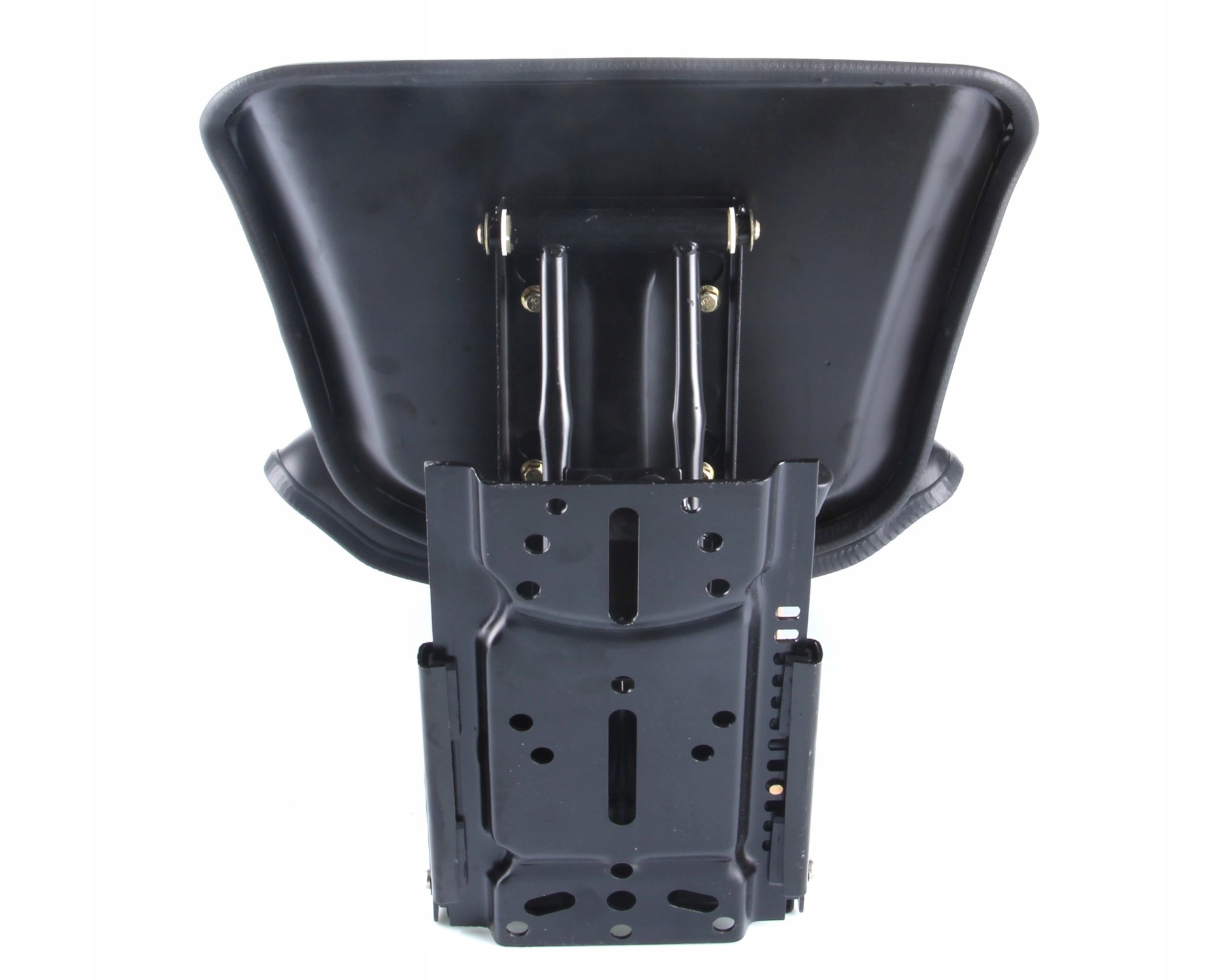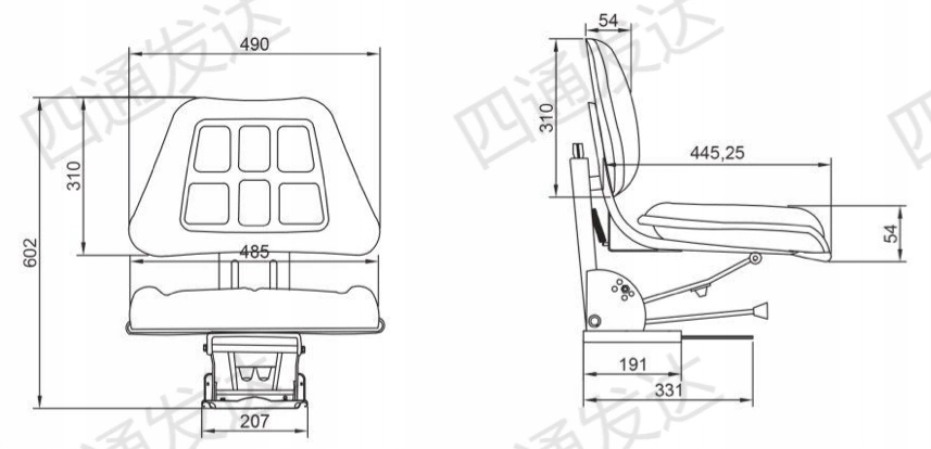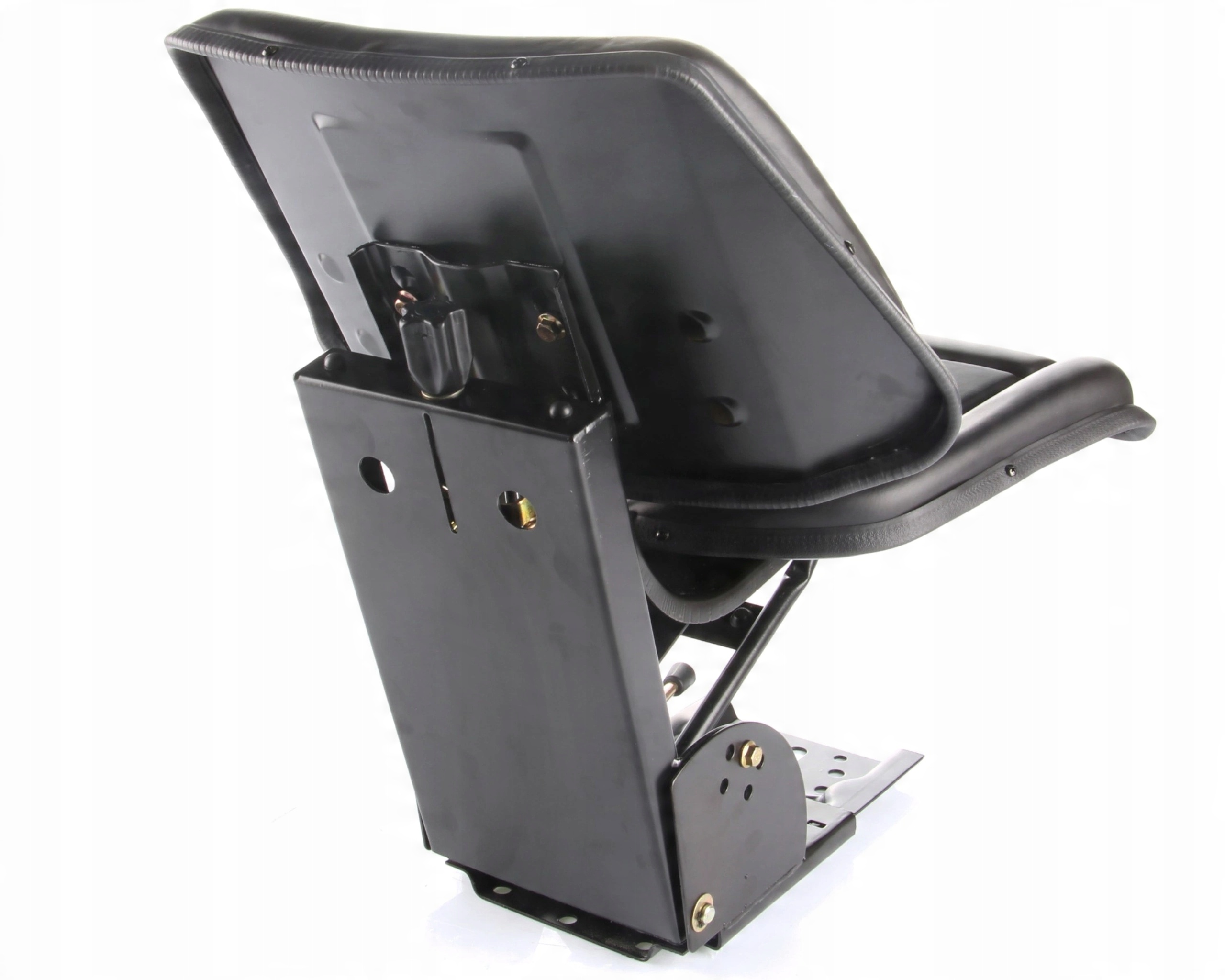 Сидіння для трактора або навантажувача механічно амортизоване без підлокітників. Сидіння особливо підходить для тракторів, сільськогосподарської техніки, навантажувачів і будівельної техніки. Має регульований рівень амортизації в залежності від ваги оператора. Завдяки важелю ми можемо регулювати рух сидіння вперед і назад. Оббивка виконана з міцного пластику, який легко підтримувати в чистоті. Численні монтажні отвори в пластині дозволяють легко та ефективно встановити в підлогу машини. Додатковою перевагою є можливість регулювання кута нахилу спинки.