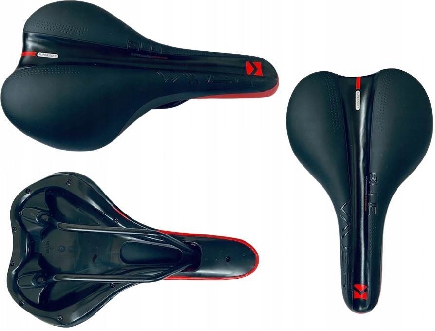 Чоловіче сідло [275x165] VADER 1151E MTBЧоловіче гірське сідло з антикомпресією забезпечує тривалий комфорт під час повсякденної їзди. Покритий водонепроникною синтетичною шкірою, стійкою до стирання. Розміри: (275x165) Колір: чорний/червоний