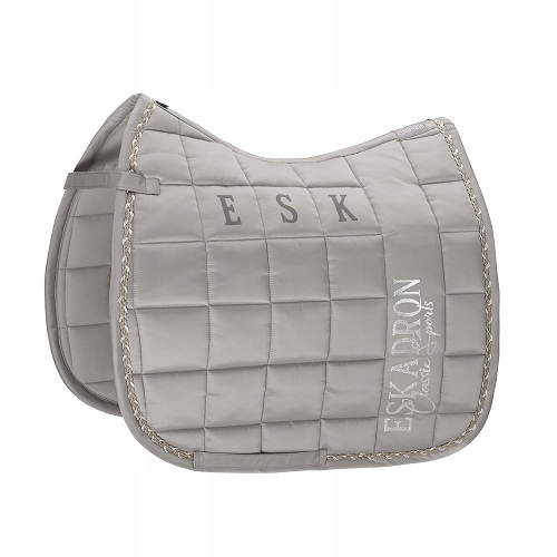 Накладка на сідло Eskadron з блискучою аплікацією, тепер у новому вигляді! Має розгалужене стьобання «Великий квадрат» із хитромудрим плетеним шнурком і написом Eskadron з обох сторін. Нижня частина виготовлена з дихаючої Cool/Dry Mesh і має силіконовий принт на протиковзкому сідлі.