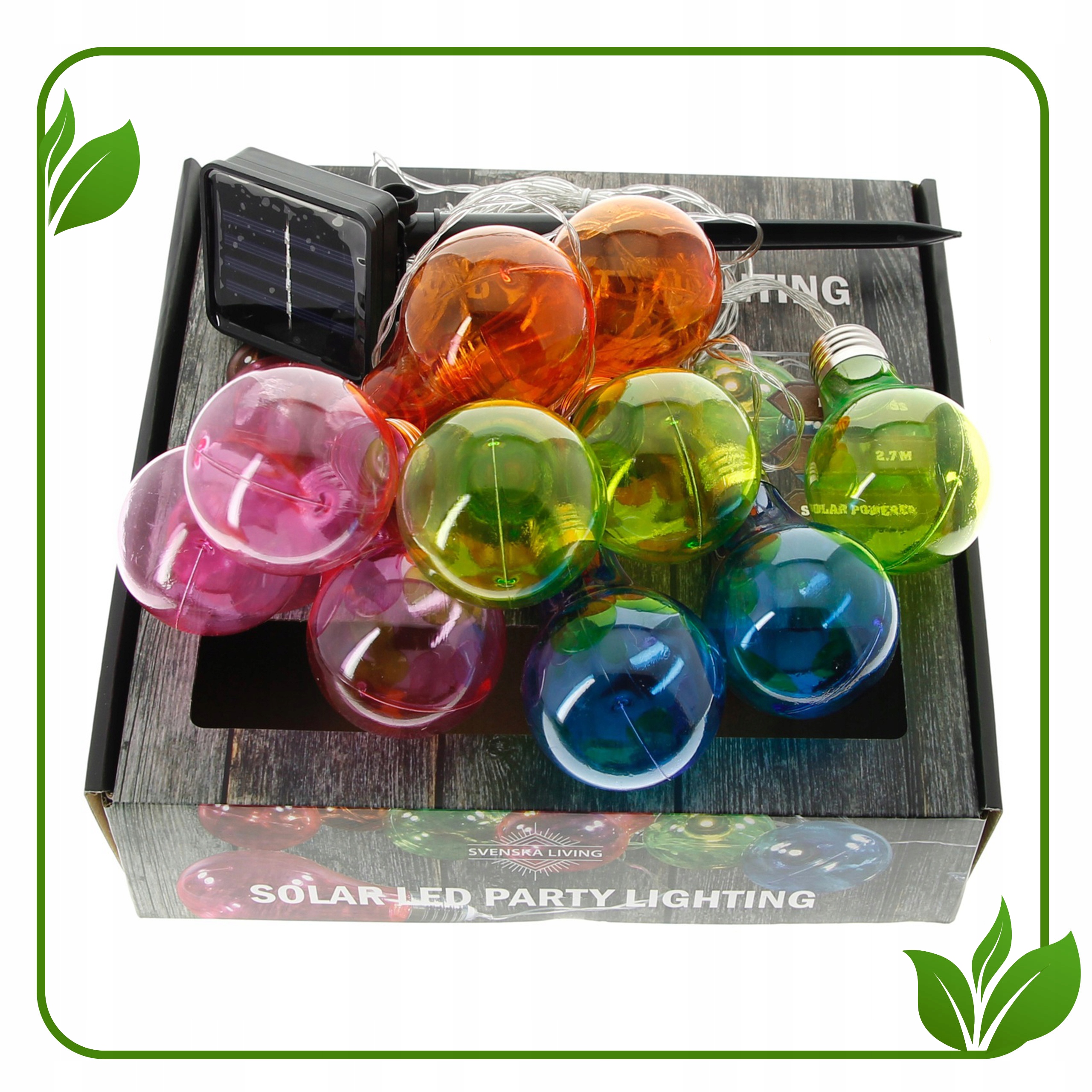 Працюючі від сонячної енергії світильники є екологічною прикрасою простору перед будинком. Висвітлюючи сад, альтанку або терасу, вони створюють неповторну атмосферу. Вони ідеально підходять не тільки для повсякденного використання, але і для будь-яких урочистостей, наприклад, сімейних вечірок і весіль на природі. Завдяки своєму унікальному дизайну (різнокольорові лампочки!) вони виглядають надзвичайно ефектно на фотографіях навіть у вимкненому стані. Гірлянда заряджається від сонячного світла, не має жодних кабелів, її використання не вимагає заміни батарейок.