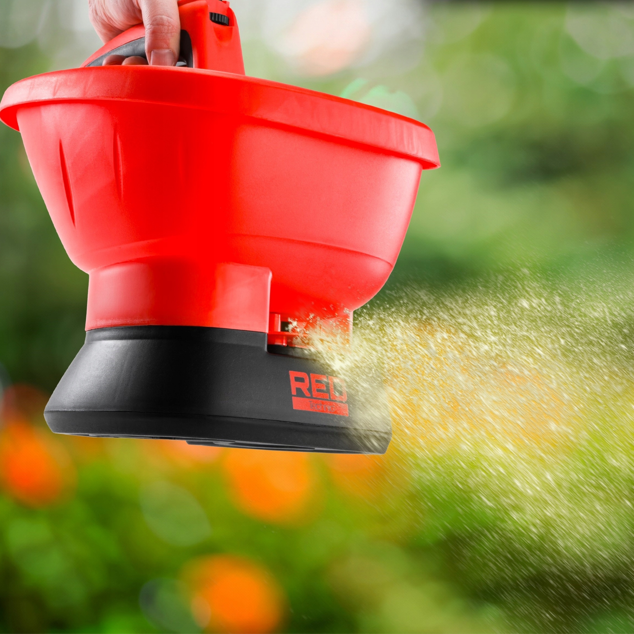 - Має 3-літровий бак для розкидання матеріалу