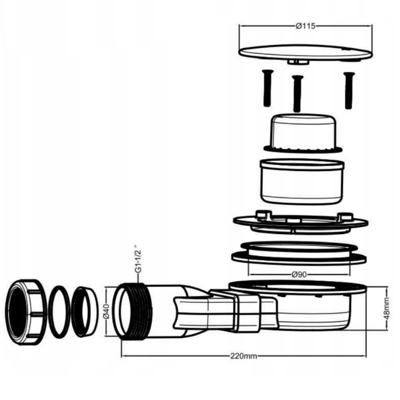 ✅ для неглибоких душових піддонів з діаметром зливу 90 мм