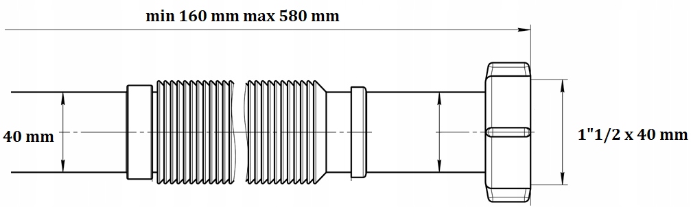 ✅ Сифон має широкий діапазон розтягування та регулювання: від 160 мм до 580 мм