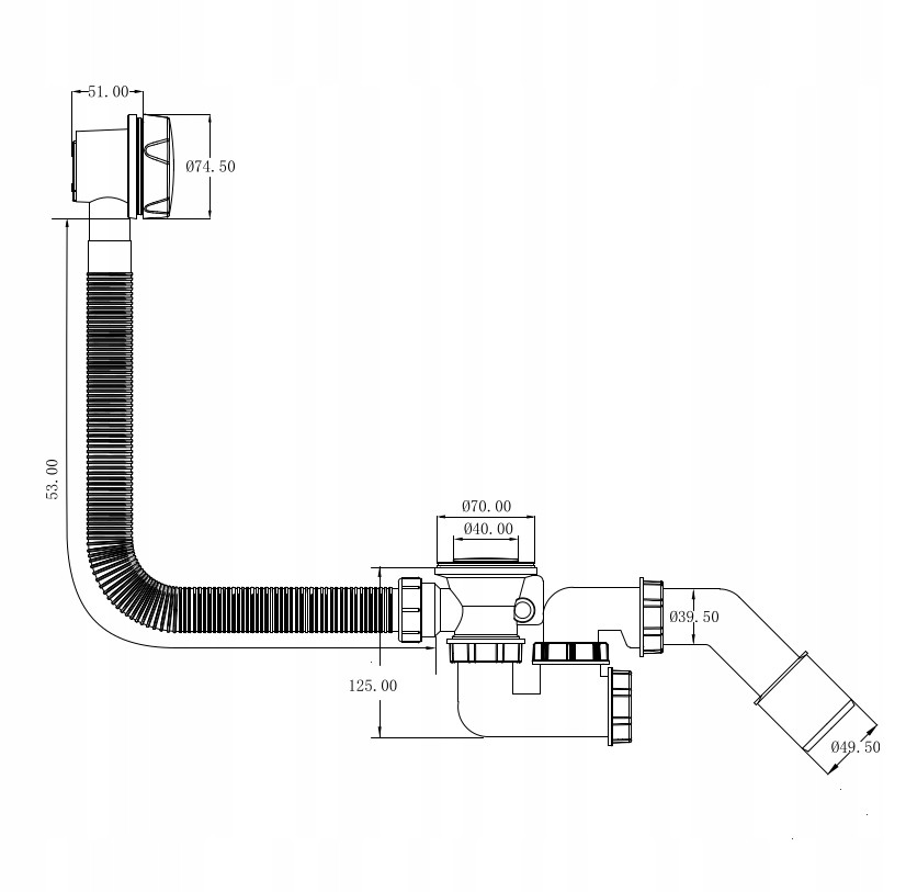 - Сифон для ванни було виготовлено з використанням, зокрема: сировина, частково отримана з переробки. Автоматичні сифони для ванн керують пробкою сифона за допомогою ручки, яка закриває перелив.