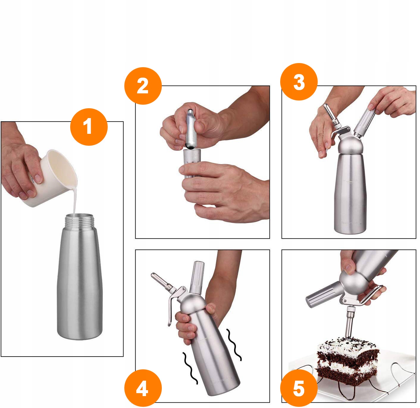 Можна використовувати для приготування збитих вершків, капучіно, фруктового мусу, морозива та інших страв молекулярної кухні.
