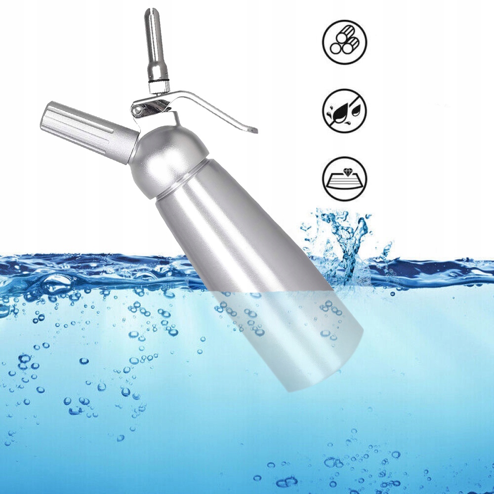 Дозатор для крему виготовлено з шліфованого алюмінію, дозволеного для контакту з харчовими продуктами. Він не іржавіє, безпечний і довговічний. Лінія максимальної шкали позначена на пляшці для зручності використання.