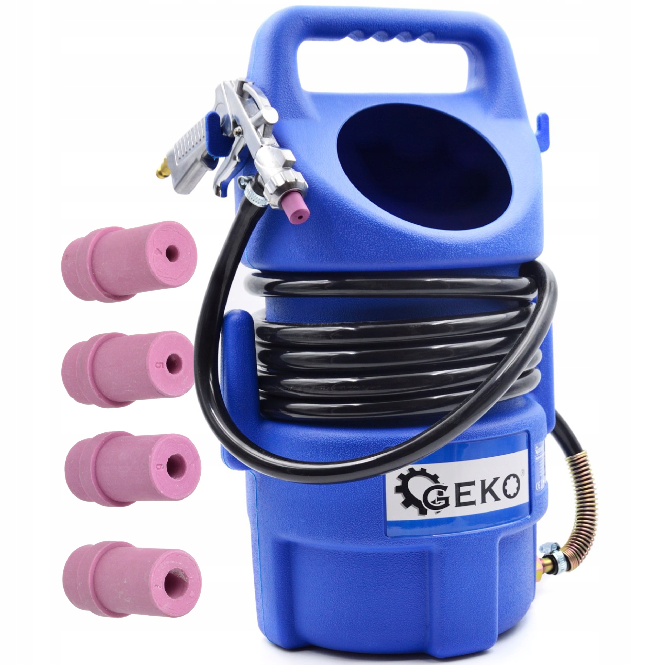 Пневматичний сифонний піскоструминний апарат від відомого бренду інструментів GEKO об'ємом 10 літрів. Виготовлена з високоякісного пластику з підвищеною стійкістю до механічних пошкоджень.