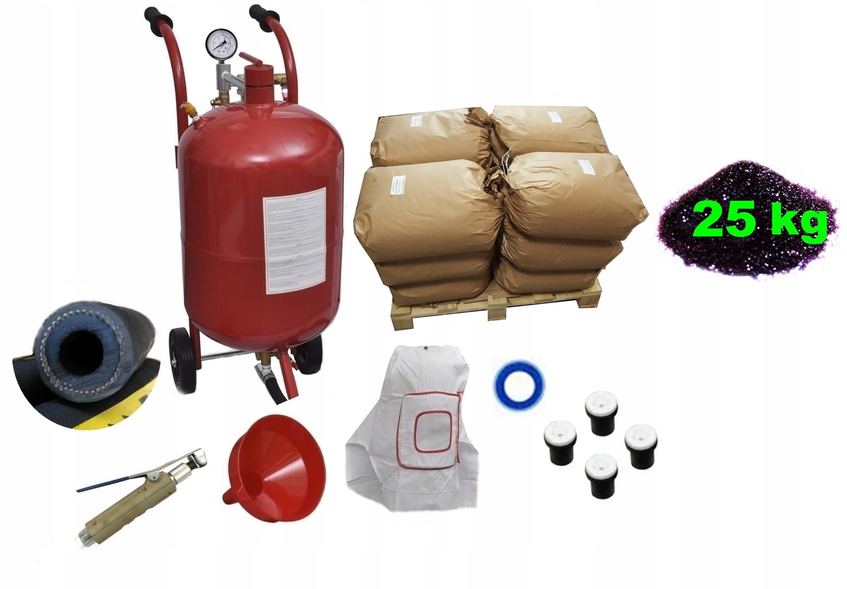 - 25 кг абразиву 0,1-0,4 мм, (на відміну від звичайного кварцового піску, абразив з гострими краями багаторазового використання )