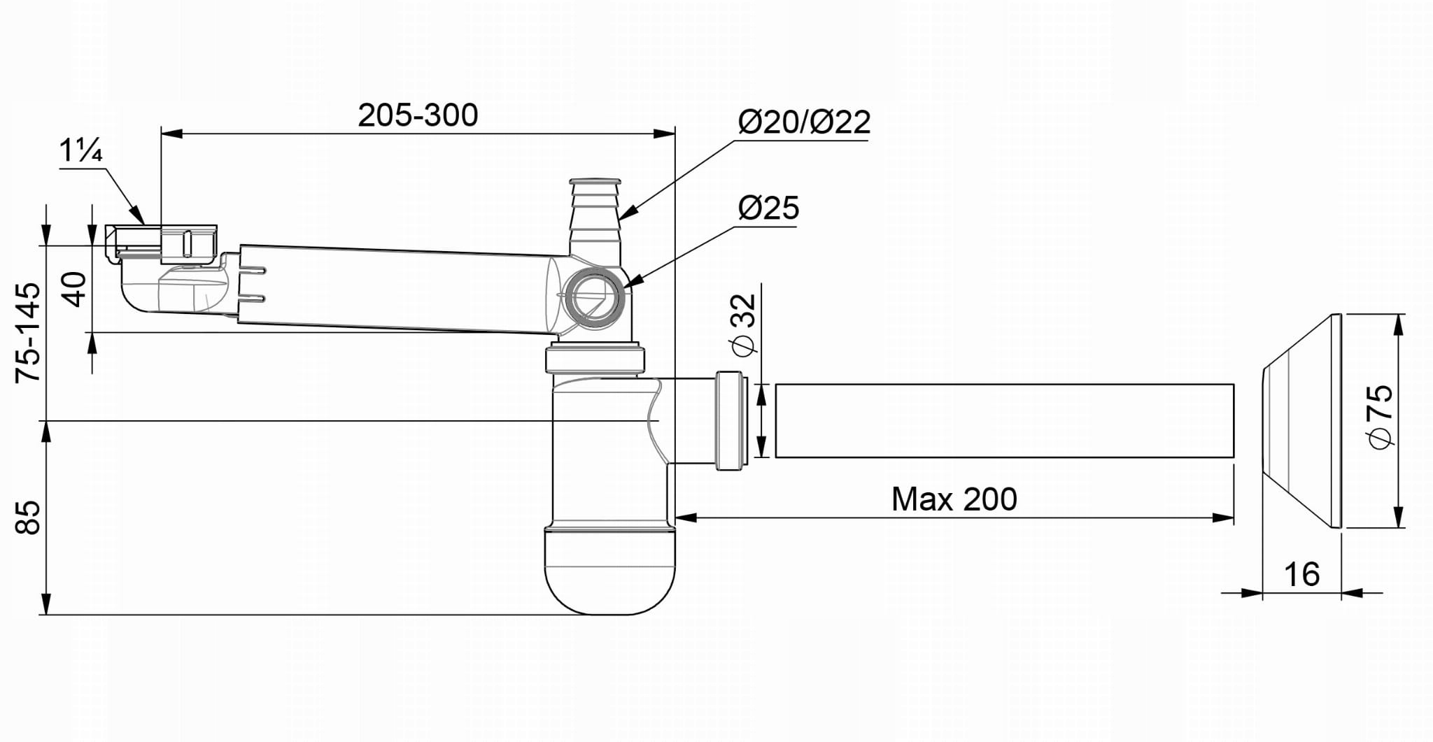 - сифон має горизонтальний телескопічний механізм, що робить його надзвичайно компактнимдозволяючи установку, наприклад, на задній стінці шафи під умивальник