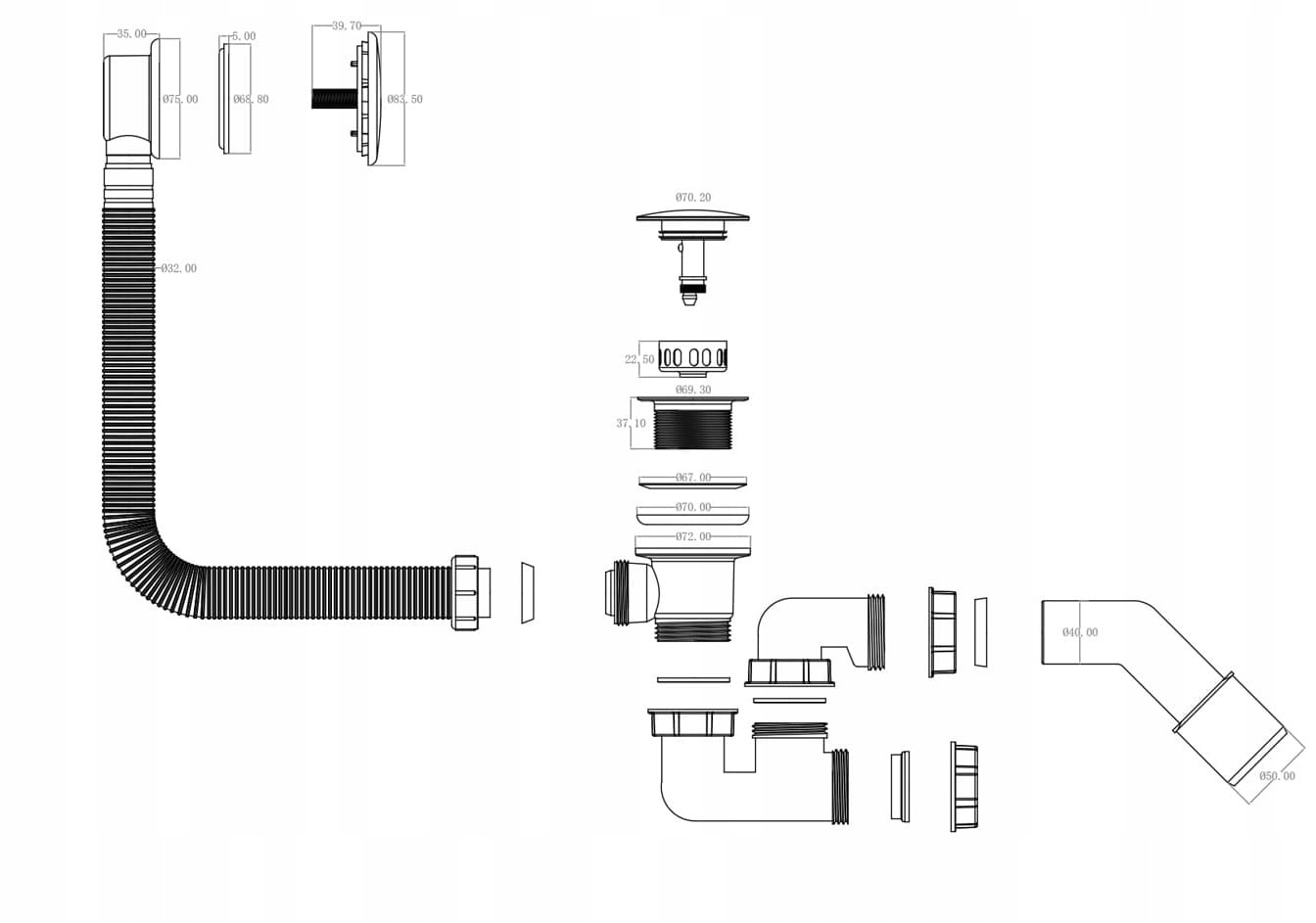 - Застосування:сифон для зливу води з ванн і душових піддонів з переливом, зі зливним отвором Ø50