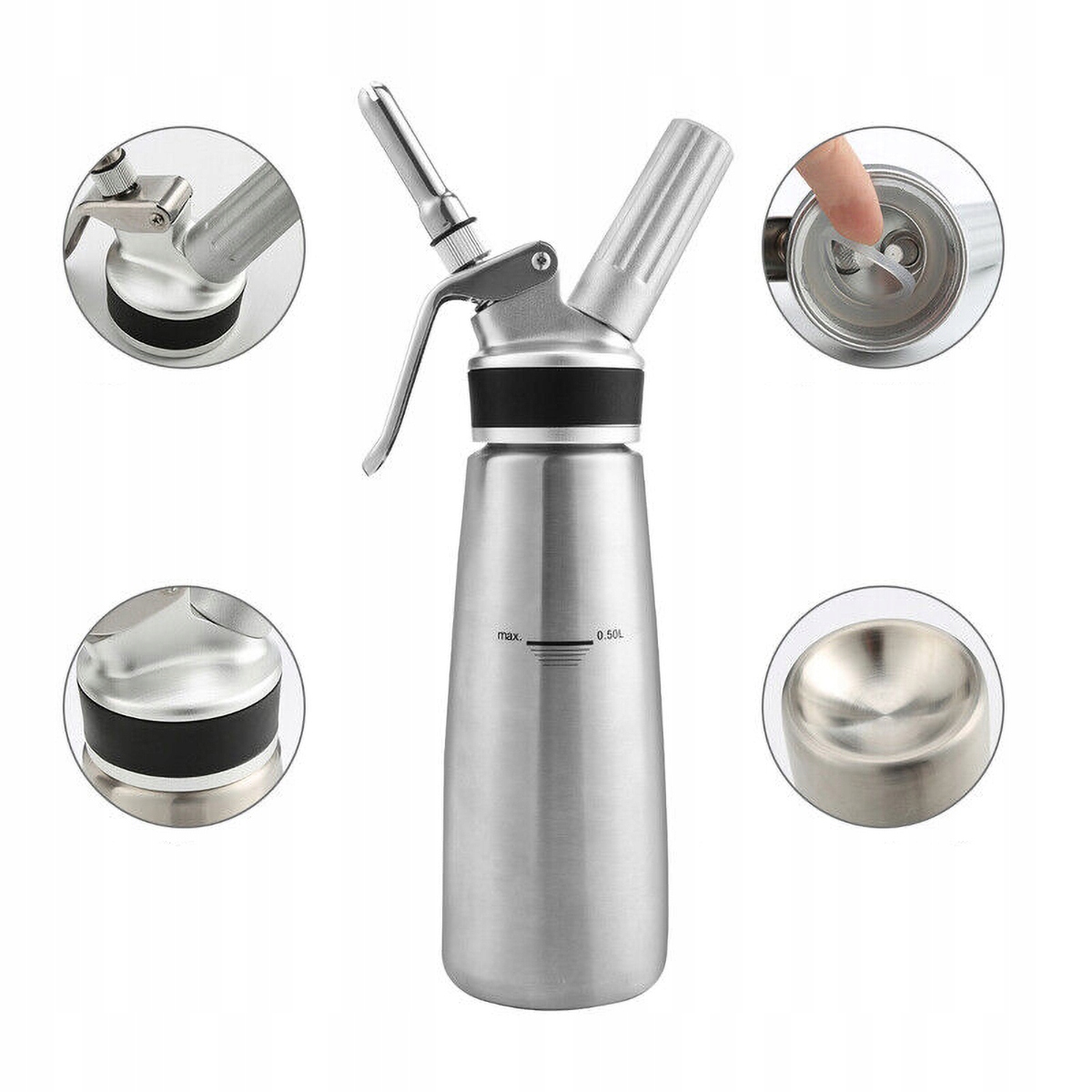 СИФОН З АЛЮМІНІЄВОГО СПЛАВУ ЗБИТІ ВЕРШКИ З НАКОНЕЧНИКАМИ 500 МЛ