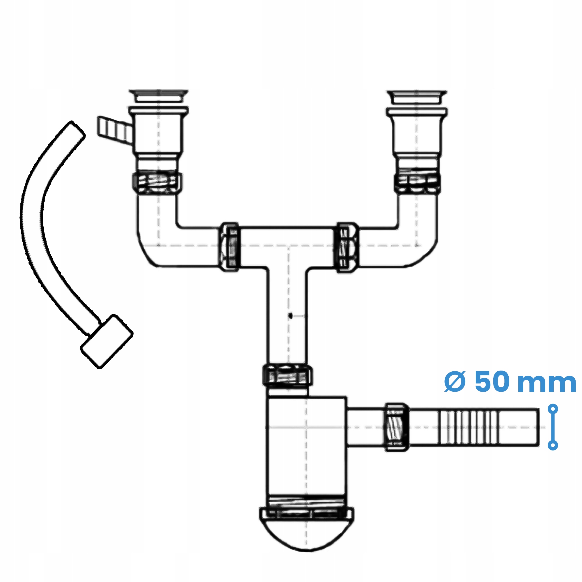 Сифон призначений для установки в умивальниках і мийках. Завдяки йому вода може вільно зливатися в каналізацію. Елемент також запобігає поширенню неприємних запахів із каналізації.
