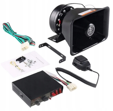 Якісна поліцейська сирена з мегафоном 200Вт. Пристрій має 8 вбудованих звуків. Мікрофон розташований у зручному тримачі з гнучким кабелем.