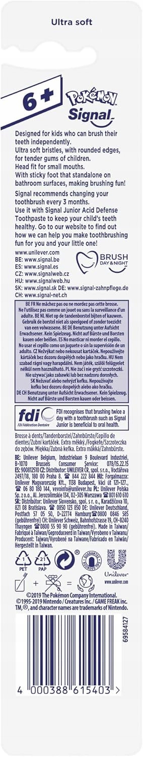 Потурбуйтеся про здорову усмішку вашої дитини з унікальною зубною щіткою Signal Pokemon! Барвистий дизайн із зображенням ваших улюблених персонажів із серії Pokémon перетворює щоденне чищення зубів на захоплюючу пригоду.