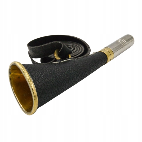 Ми представляємо зігнуту шкіряну сигнальну каблучку довжиною 16 см, виготовлену з міцної латуні та оздоблену чорною шкіряною оболонкою, що надає їй елегантного класичного вигляду. Це компактний, але повністю функціональний інструмент, який ідеально підходить для використання в польових умовах - як під час полювання, так і під час змагань з мисливськими собаками, дресирування та повсякденної мисливської діяльності.