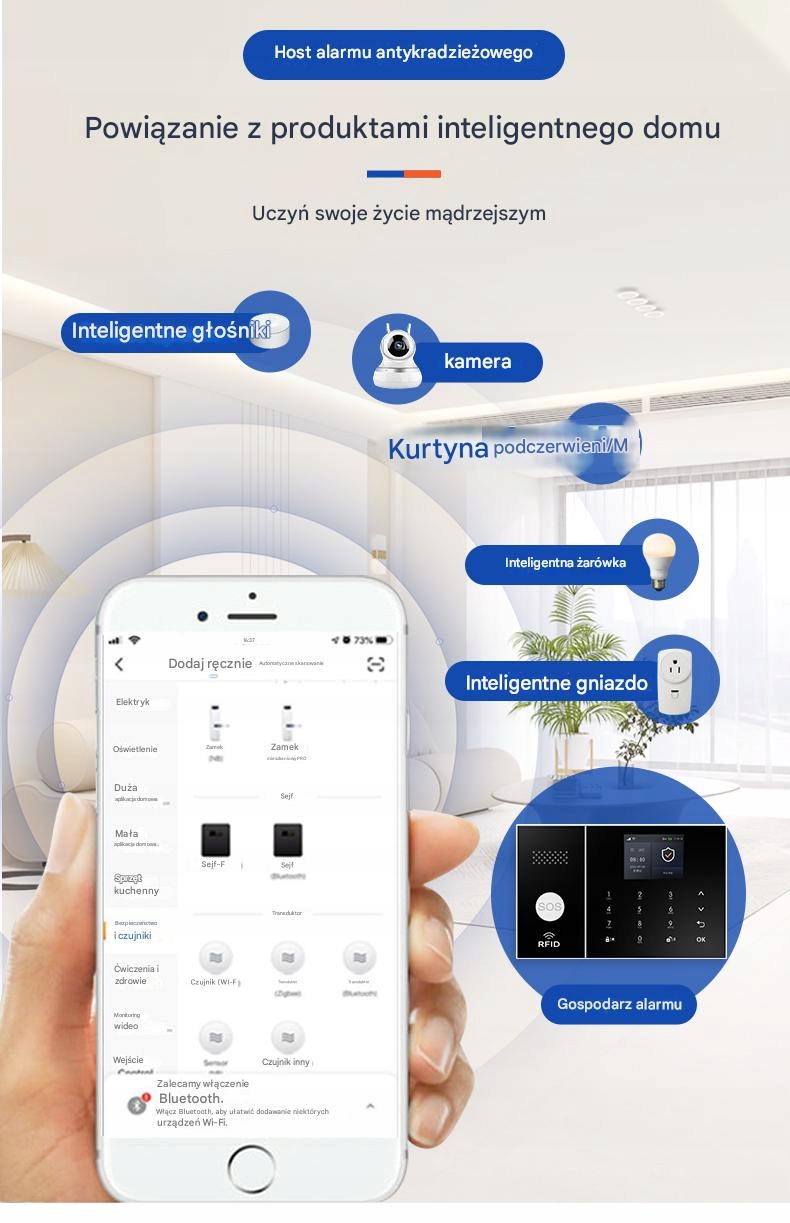 Подбайте про безпеку свого оточення завдяки інтелектуальній системі сигналізації, яка поєднує бездротову технологію RF433 МГц із зручним керуванням через мобільний додаток Smart Life. Завдяки інтеграції з мережами WiFi 2,4 ГГц і GSM 2G система негайно інформує вас про загрози, незалежно від того, де ви знаходитесь.