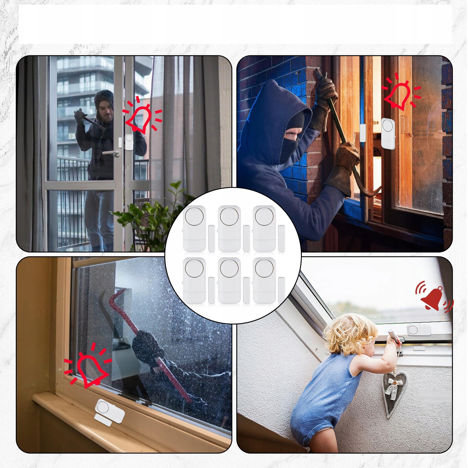 6 шт. самоклеючі датчики сигналізації для вікон і дверей, 120 дБ, з бездротовим магнітним датчиком, забезпечення безпеки будинку, захист від злому, з батарейками