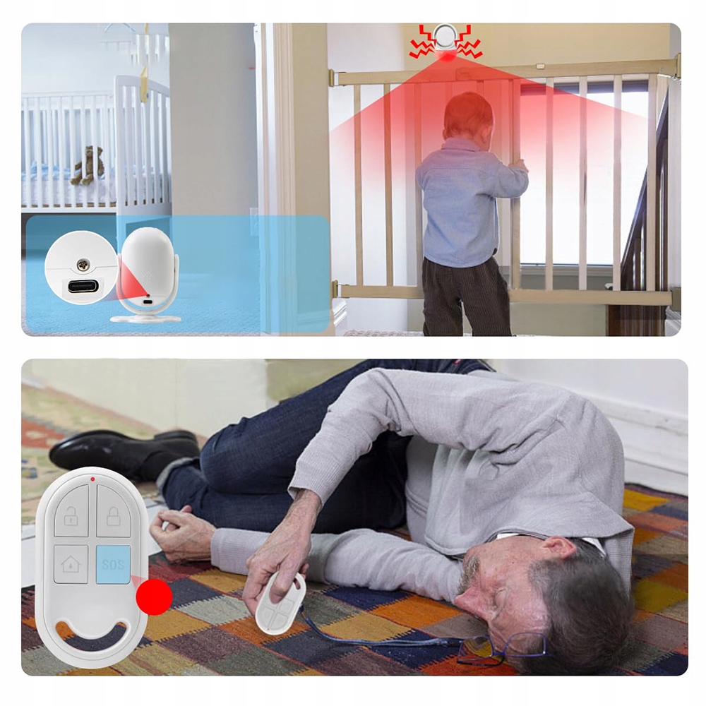✴️【Безпечна конструкція】Система сигналізації датчика руху використовує передову технологію інфрачервоного виявлення з діапазоном 5-8 метрів. Додатково мобільна сигналізація має сирену з гучністю 125 дБ і радіусом дії до 100 метрів на відкритих територіях. Система може як відлякувати зловмисників, так і своєчасно попередити вас, забезпечуючи постійну безпеку вам і вашій родині.