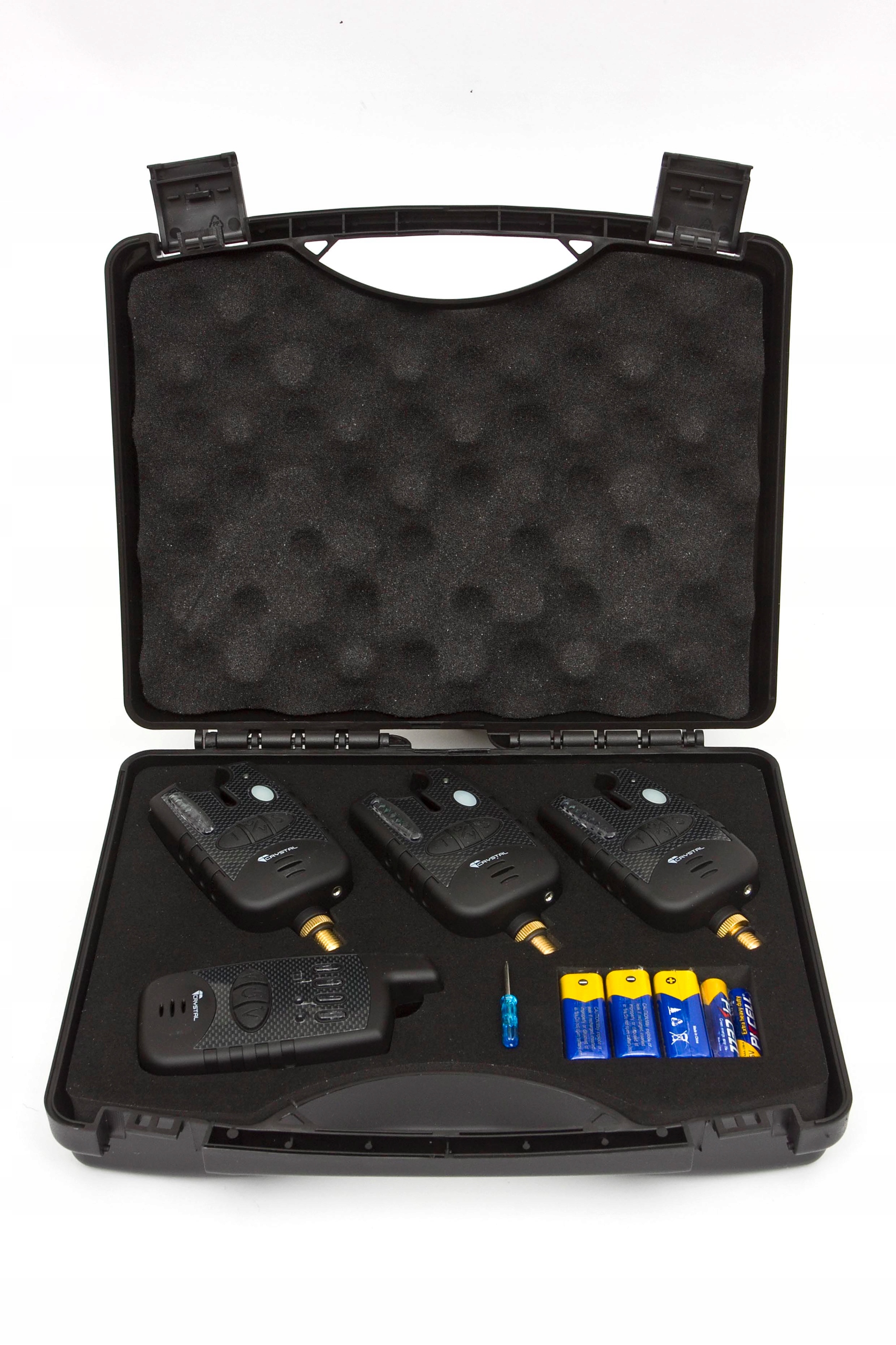Захищені електронні сигнали захищені від несприятливих погодних умов. Про знімання ми повідомляємо звуком і світлом. Індикатори оснащені 8 світлодіодними лініями, що сигналізують про заданий колір, напрямок і швидкість клювання! Вони також мають яскравий кольоровий світлодіод «NIGHT LIGHT», який допоможе знайти відповідний сигналізатор у темряві. Сигнали працюють в обох напрямках - від і до берега. Будильники мають регулювання гучності, тону та чутливості. Коли ми повністю вимикаємо звук в блоці управління, вібросигнал залишається. Сигналізацію можна підключити до свінгера або пристрою голодування - завдяки виходу mini-jack. Водонепроникний корпус захищає сигнали від несприятливих погодних умов. Завдяки стандартизованій різьбі індикатори підходять до всіх типів опор, капсул і триподів. Сигнали живляться від батарейок 9В, що входять в комплект. Блок керування поставляється з батарейками AAAx3...
