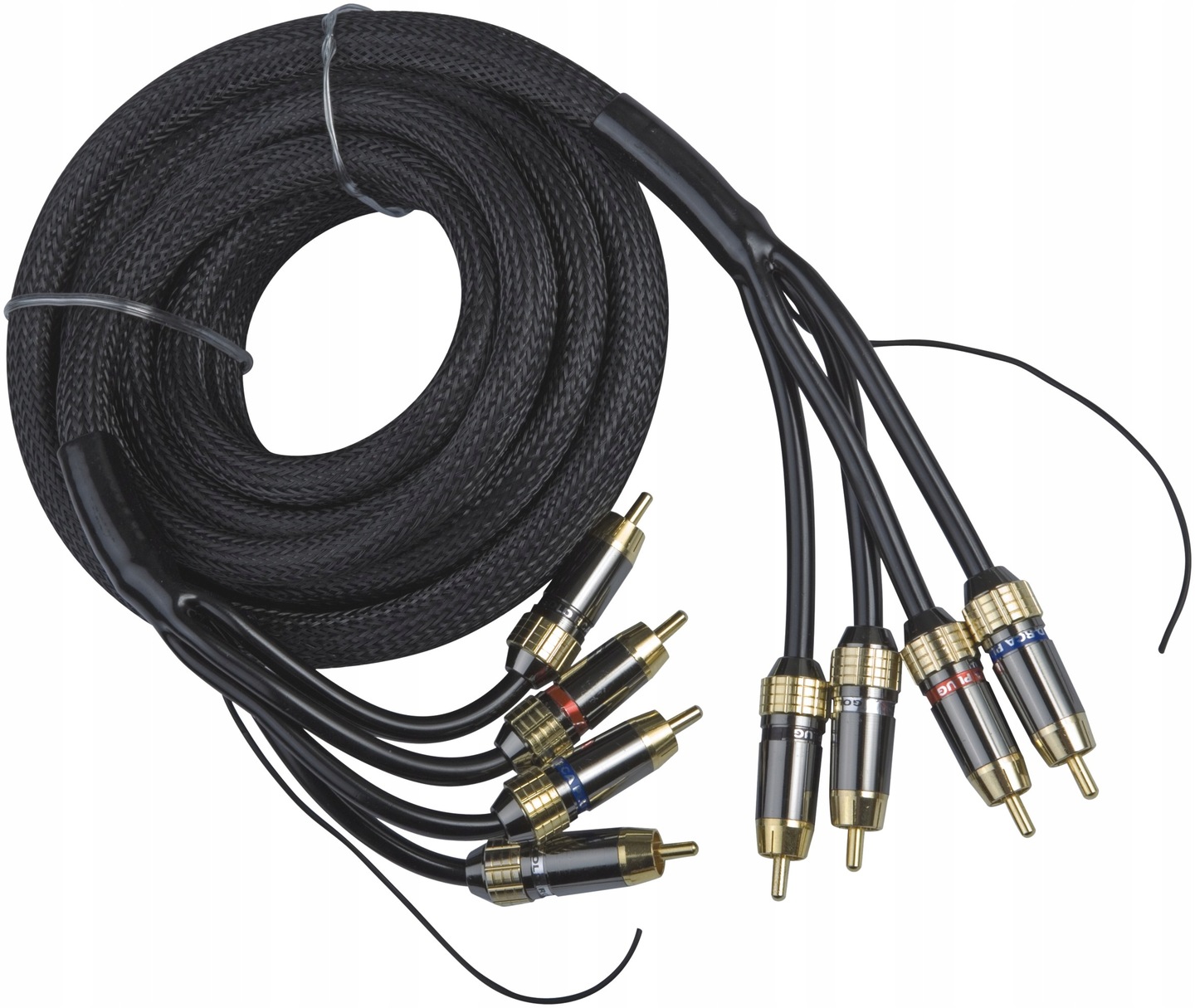 ? Довжина: 4,9 м? Посібник: Чиста мідь? Роз'єми: 4RCA ↔ 4RCA? Клем: золото -24 к, діаметр 9 мм? Екрани: Потрійна ізоляція з алюмінієвою фольгою? Крім того: кабель управління