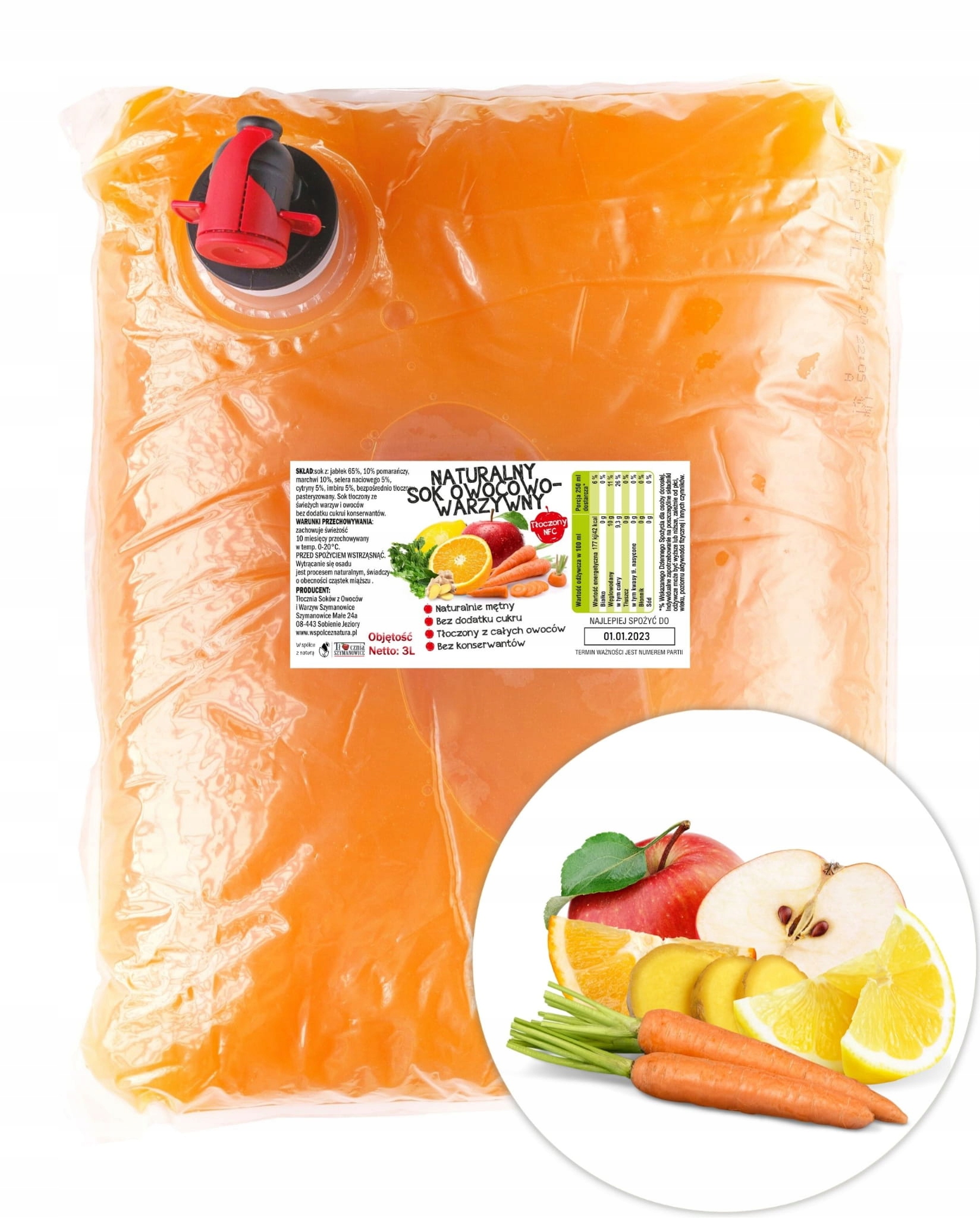 Натуральний фруктово-овочевий сік 100% - мультивітамінний пресований сік 3 літри