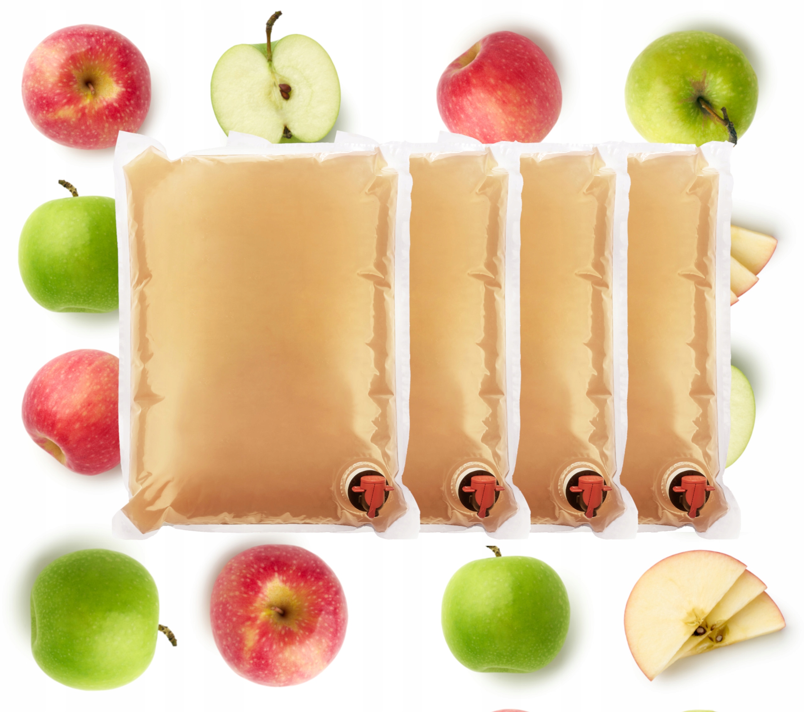 Соки NFC в пакувальних матеріалах, дозволених для контакту з харчовими продуктами (одноразові пакети з багатошарової фольги та кран), які дозволяють споживати продукт протягом 21 дня після відкриття. Упаковка не містить BPA (BPA FREE).