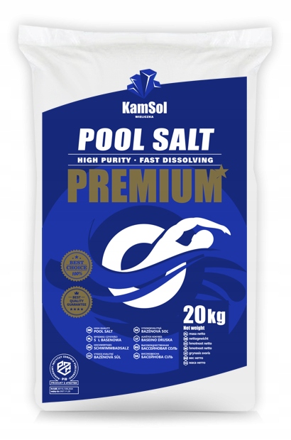 Сіль басейну kamsol premium 99,9% упаковки NaCl 20 кг