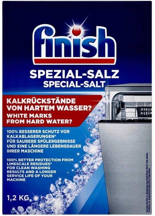 Якщо вас турбує вапняний наліт у посудомийній машині, залишаючи непривабливі смуги на посуді, використовуйте засіб, який пом’якшить воду та впорається з цією проблемою . Finish Calgonit — це ідеально чиста сіль, яка не містить заліза чи карбонатів, шкідливих для механізму пом’якшення води в посудомийній машині. Дія солі підвищує ефективність миючих засобів для посуду та сприяє її ретельному очищенню.