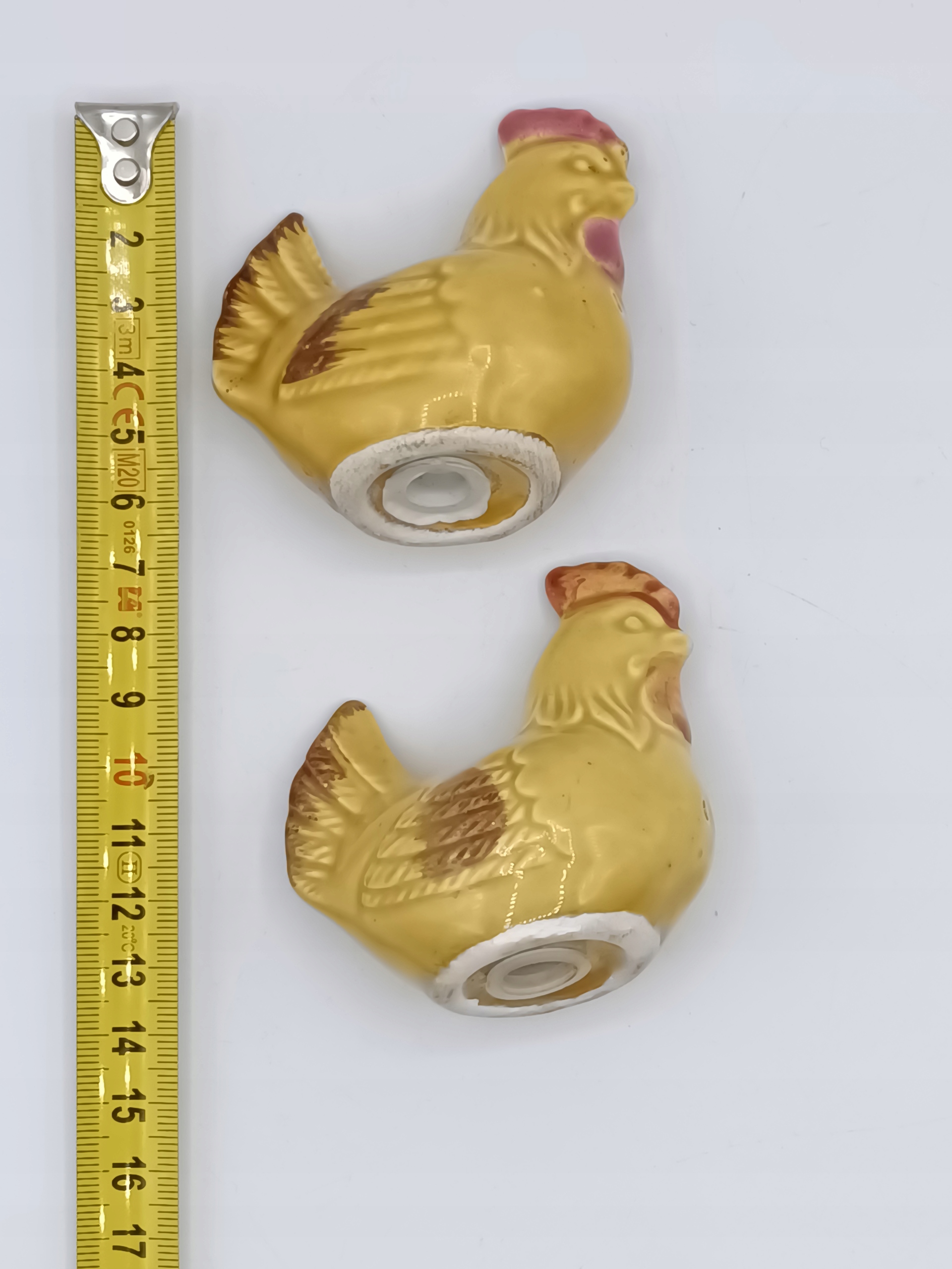 Vintage - Кераміка, підготовлені соляні ходунки, пластикові ковпачки. В одному є три отвори для солі, в інших трьох для перцю. Вони 7 см кожна. Вага двох 80 г. Час від часу використовується, можливо, з один раз;) трактується для мене як колекціонера.