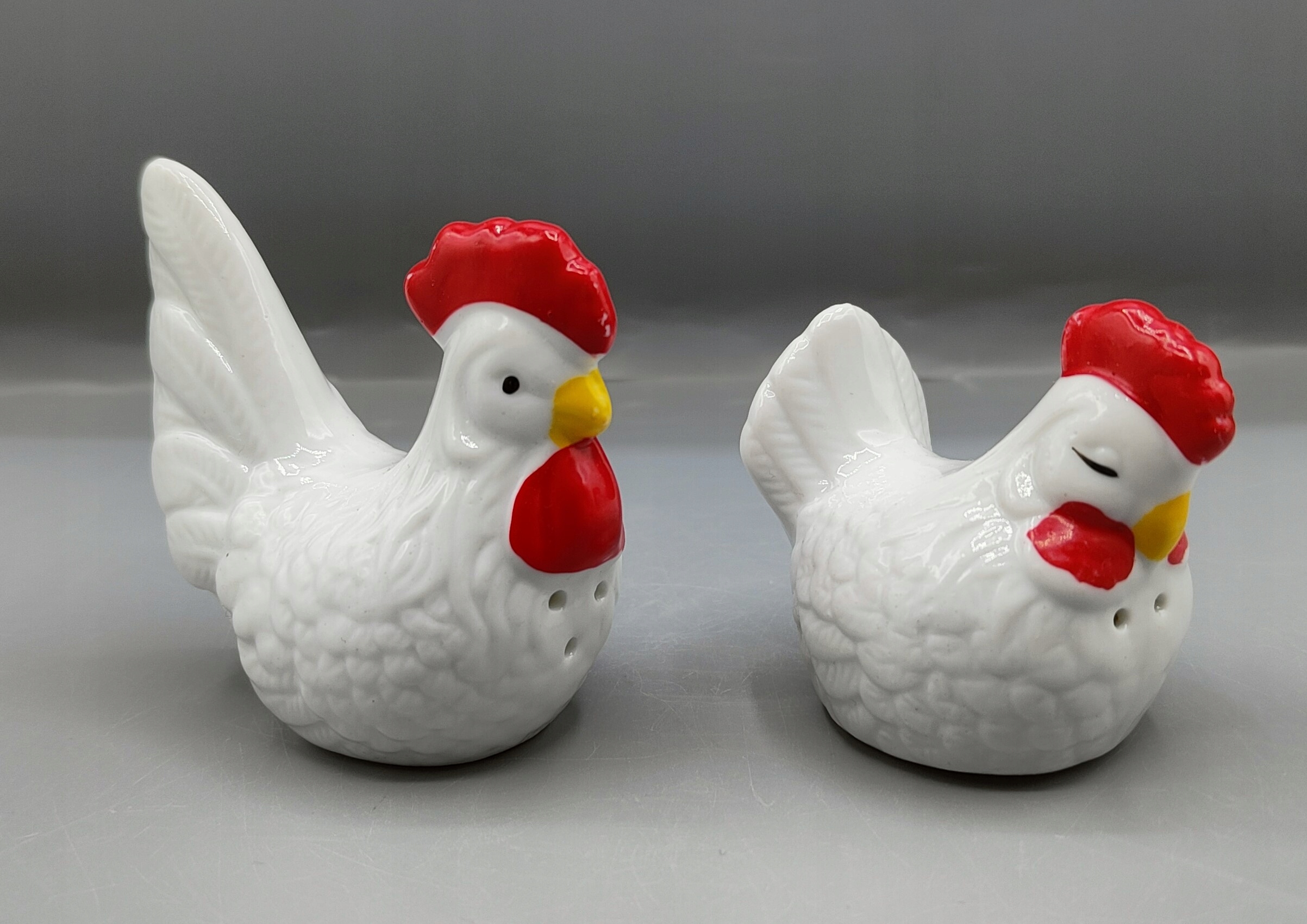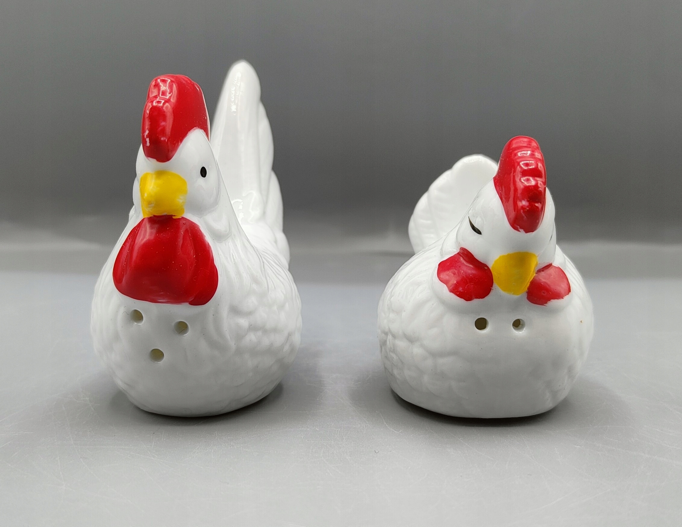 Vintage - Кераміка, підготовлені соляні ходунки, пластикові ковпачки. В одному є три отвори для солі, в інших трьох для перцю. Один - 7,8 см, другий 6,5 див. Вага 100 г. Іноді використовуються, трактуються для мене як колектора.