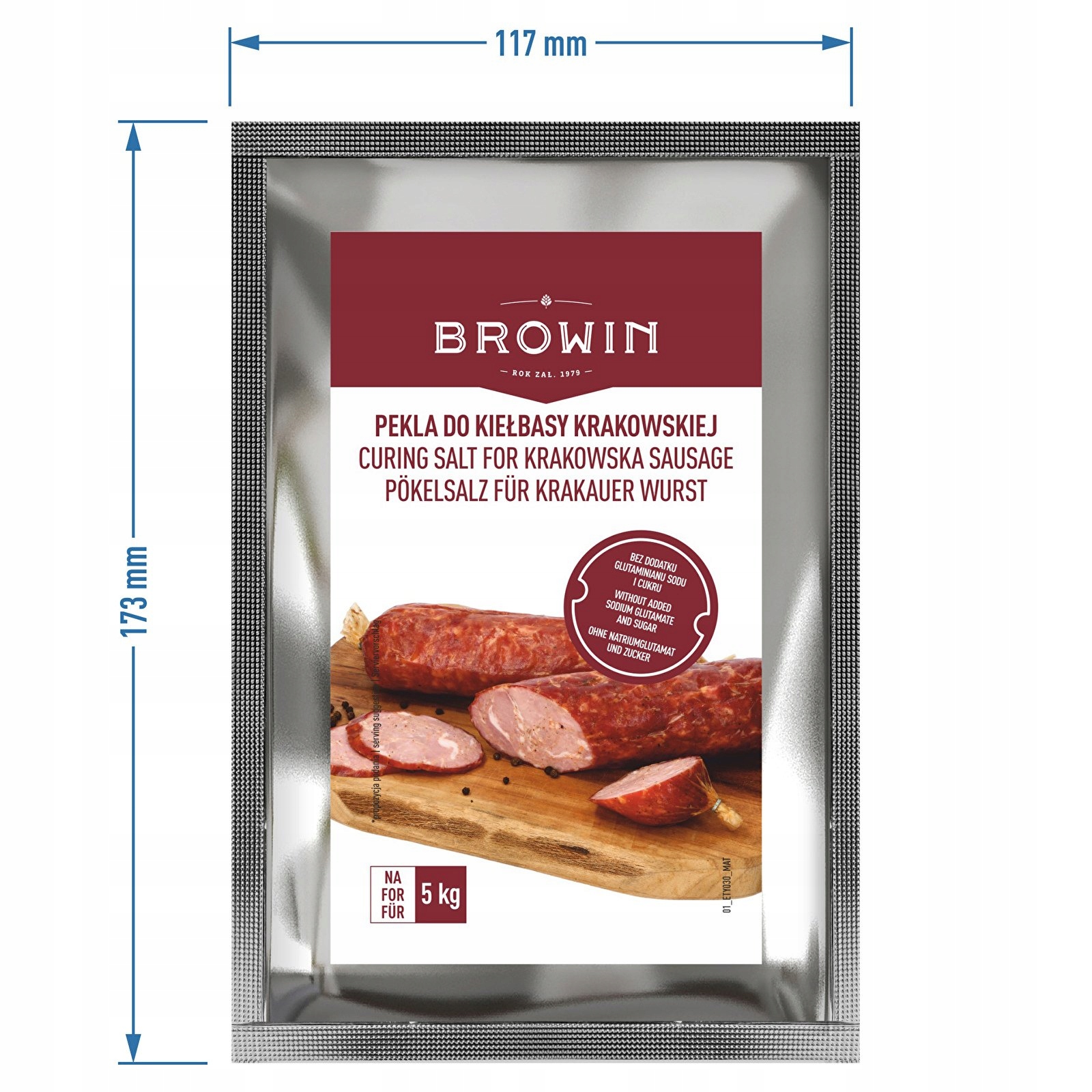 - Ефективне пакування – 115 г солі достатньо для приготування до 5 кг краківської ковбаси.