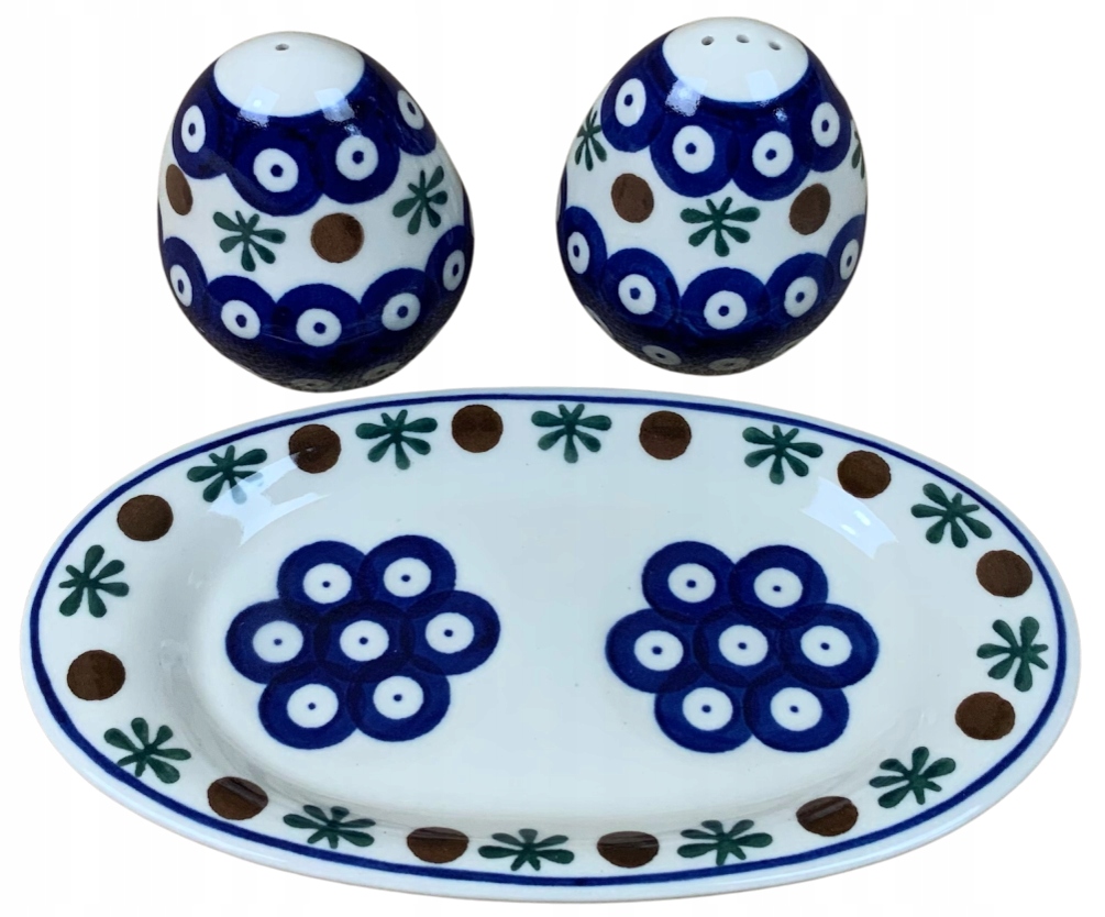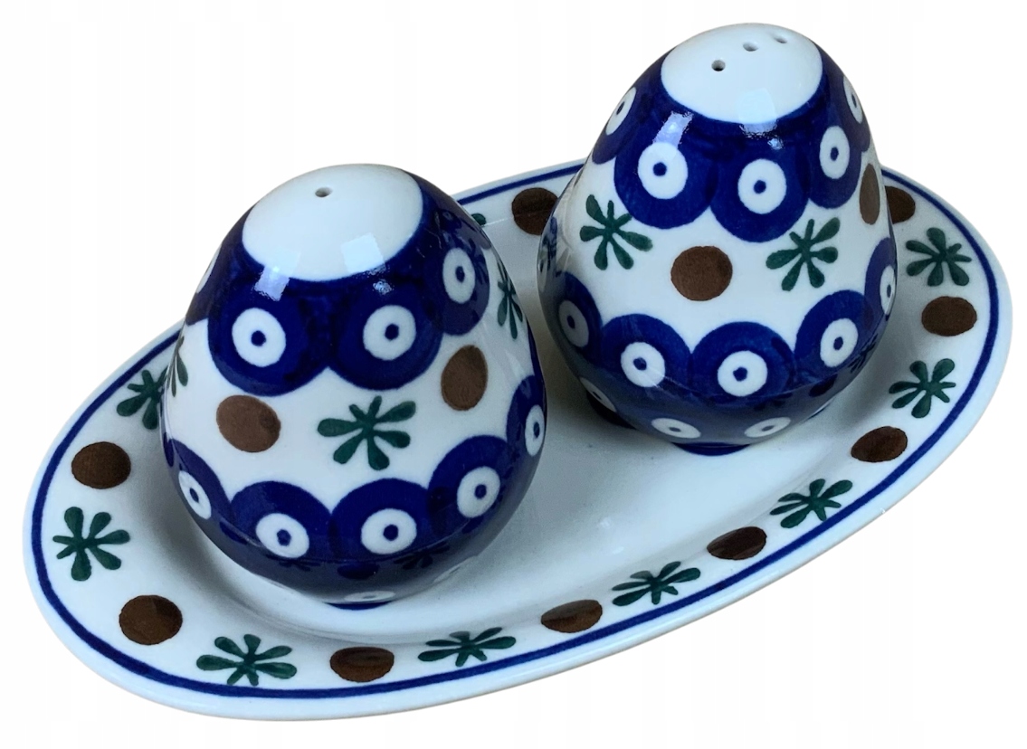 Spice Set від Bolesławiec - це не лише практичний елемент кухонного обладнання, але й прекрасне прикраса, яке введе трохи традиції та витонченості у вашому домі. Складається з соляного шейкера, перцю та підстав, він ідеально підходить для зберігання та подачі улюблених спецій.