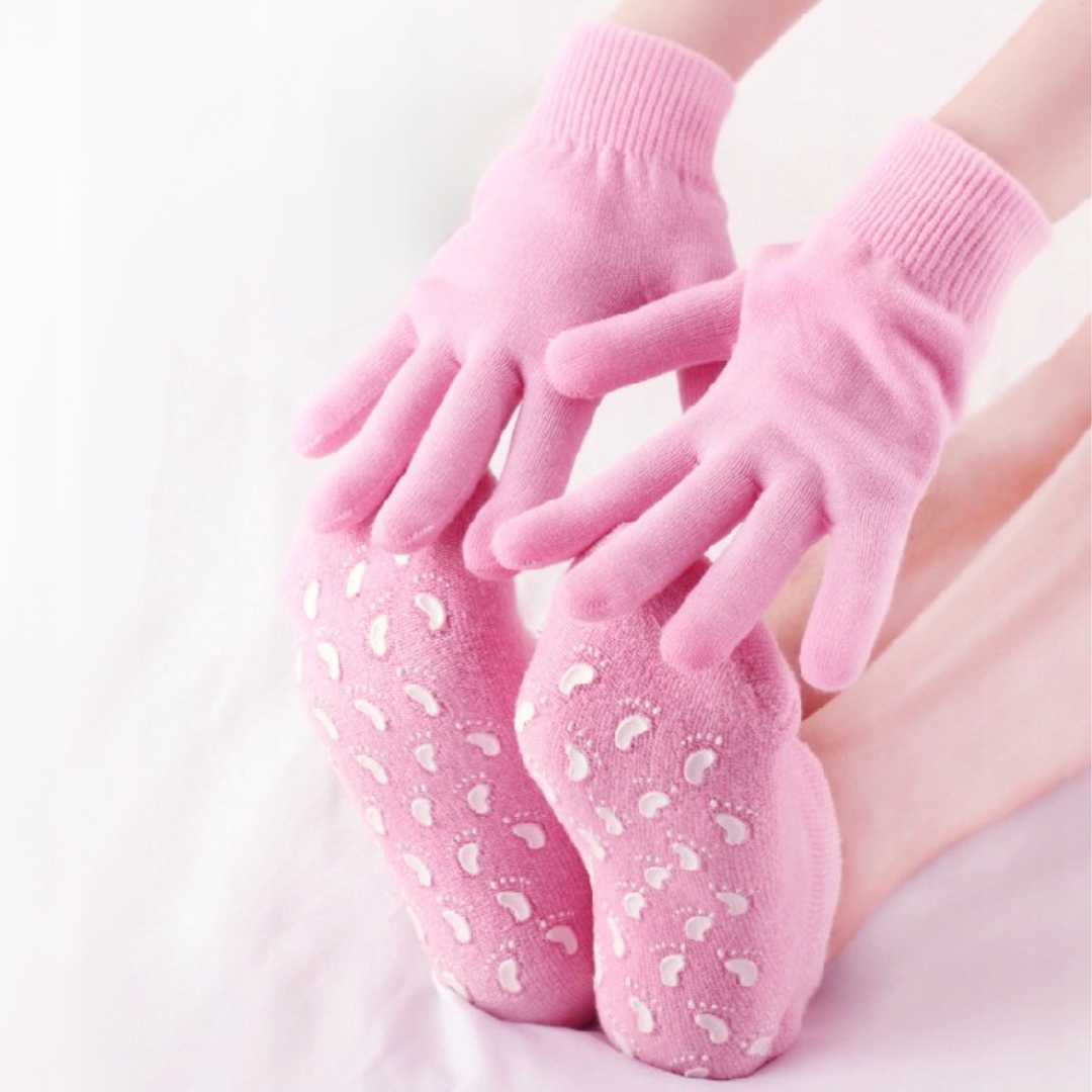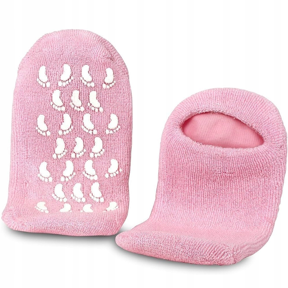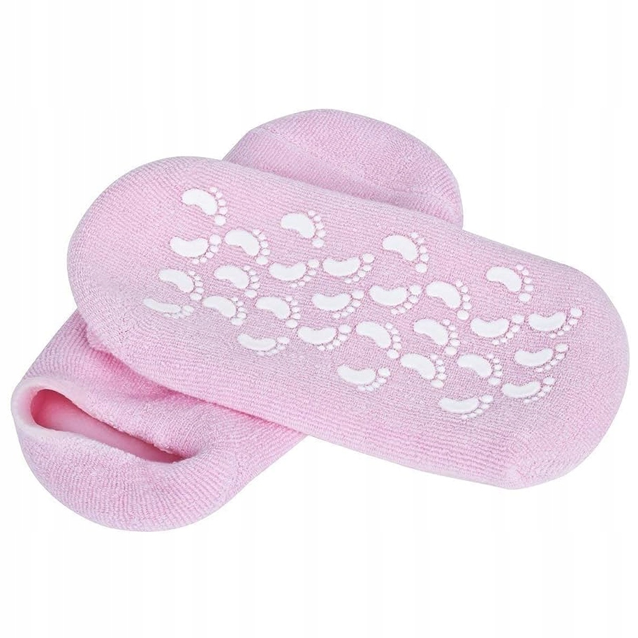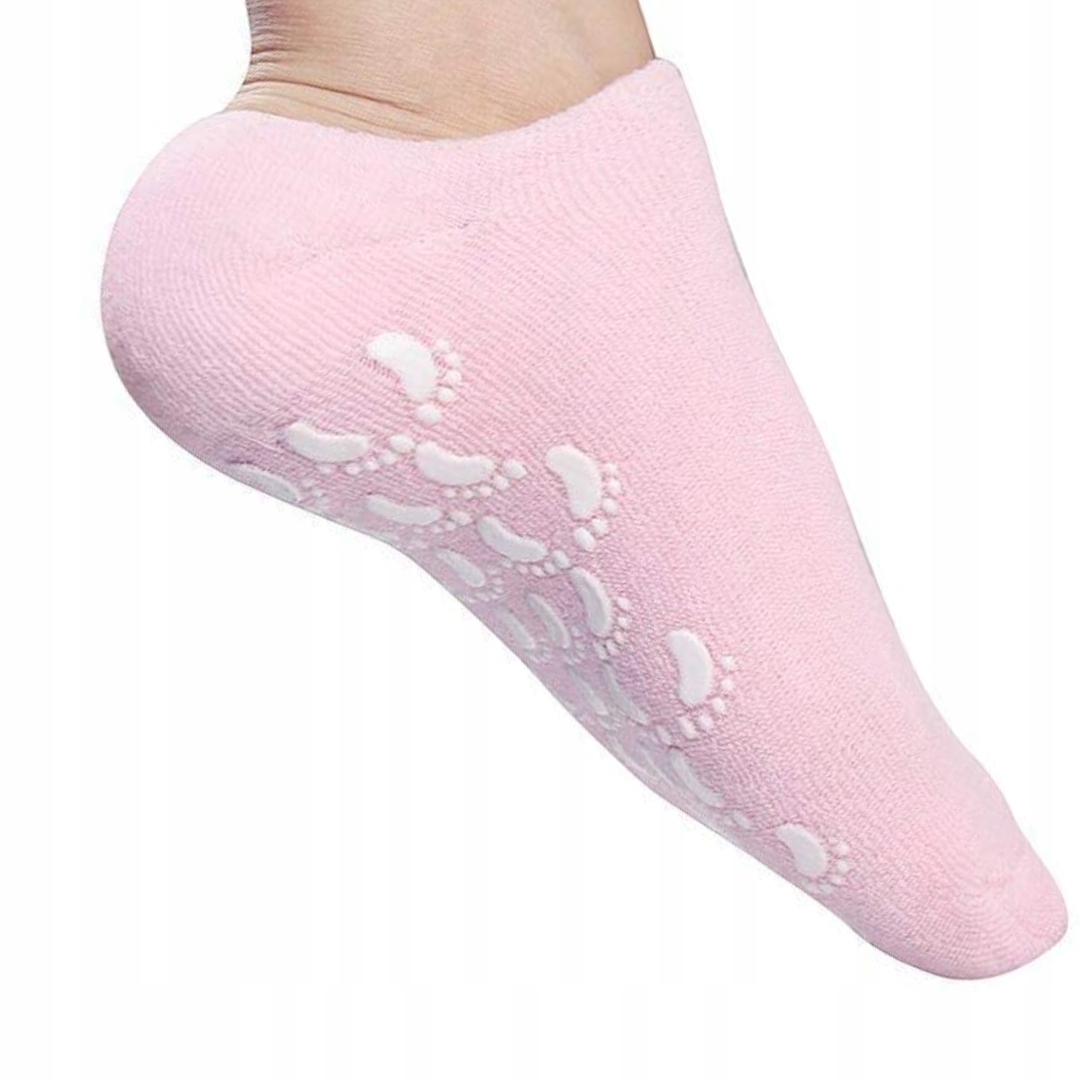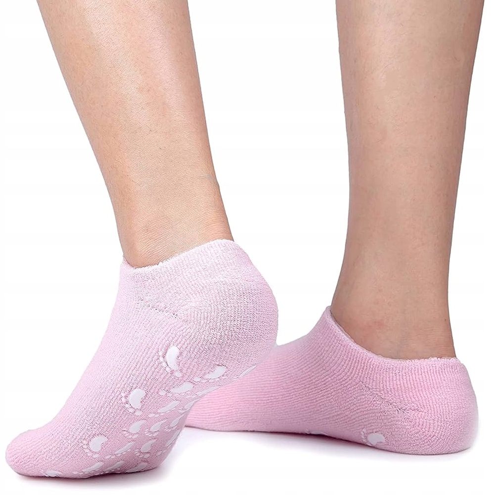 Зволожуючі шкарпетки з бавовняної махрової тканини, пробиті гіпоалергенним гелем, збагаченим вітаміном Е та натуральними рослинними оліями: лаванди, жожоба, оливи. Вони сприяють регенерації епідермісу, забезпечують інтенсивний догляд і сприяють регенерації втомлених ніг.
