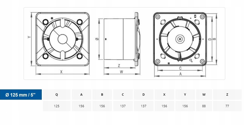 Вентилятор для ванної кімнати fi125 біла панель стандарт