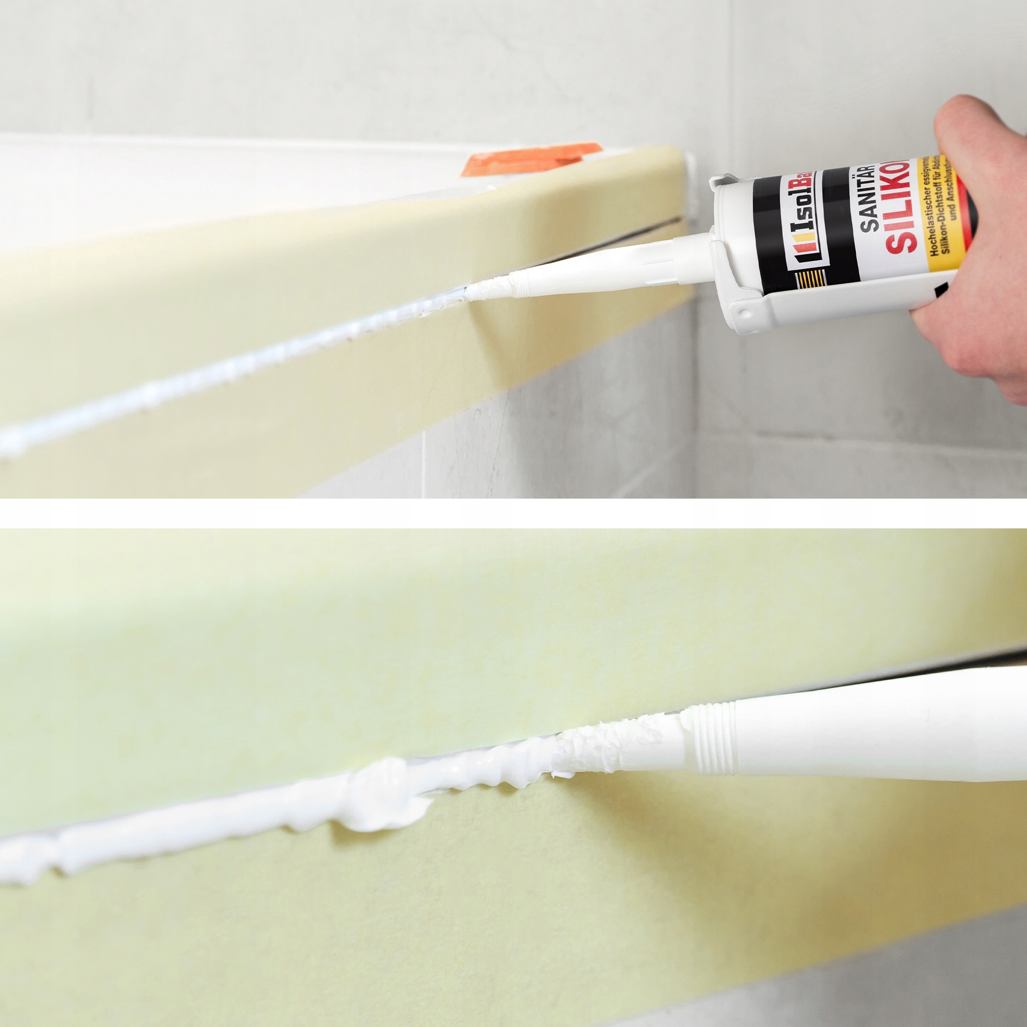 герметизація, з'єднання та затирання місць, що піддаються водою: ванні кімнати, кухні, пральні, ванни. Герметизація акрилових ЕД: ванна, душові підноси, кабіни для душу, мийки, мийки, а також кухонні стільниці тощо.