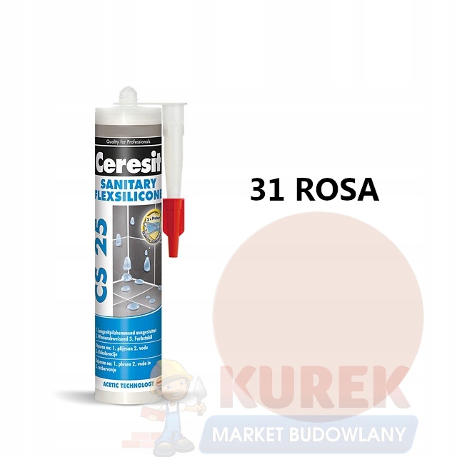 Силікон Ceresit CS 25 використовується для заповнення швів між керамічною плиткою в кутах стін і на стиках між стіною та підлогою, а також для заповнення щілин між плиткою та санітарні приміщення. Забезпечує щільне з'єднання в місцях, де звичайні з'єднання тріскаються. Завдяки постійній еластичності та водостійкості CS 25 підходить для ущільнення компенсаційних швів, що проходять у вологих приміщеннях. Силікон призначений для використання у ванних кімнатах, кухнях, туалетах, душових кабінах, а також поза будівлями.