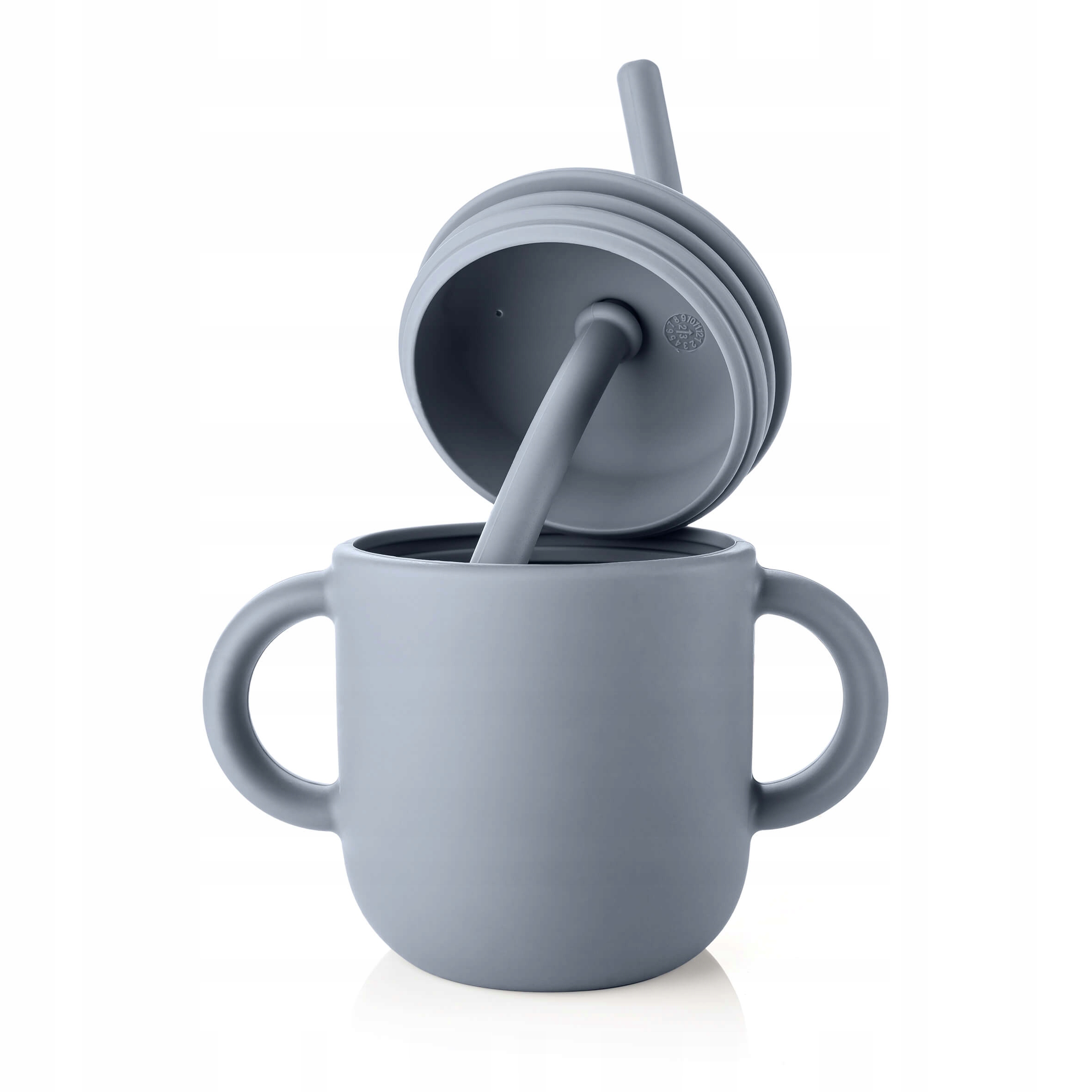 Силіконова чашка з двома кришками - без висипу і з соломинкою - 2 в 1 для перекусів і для навчання пити REER