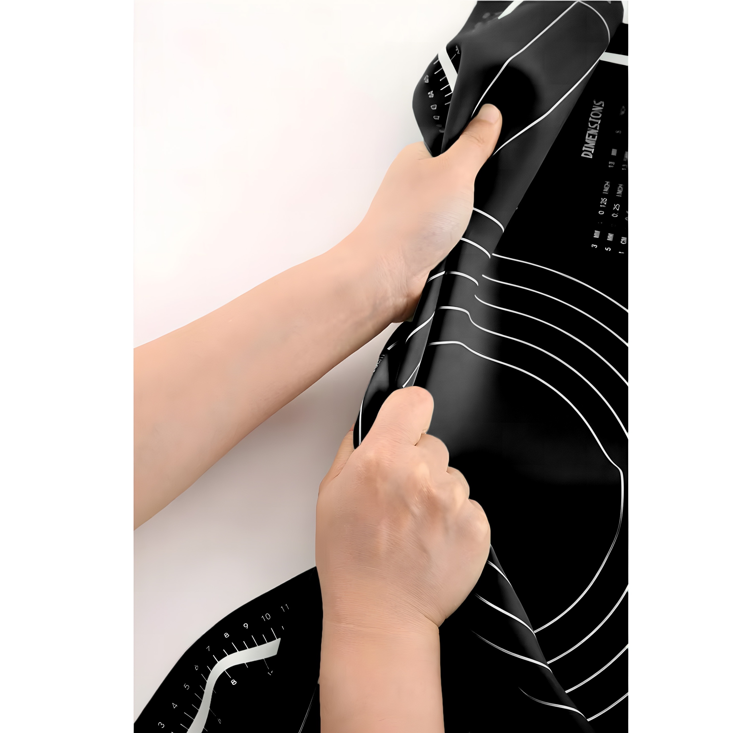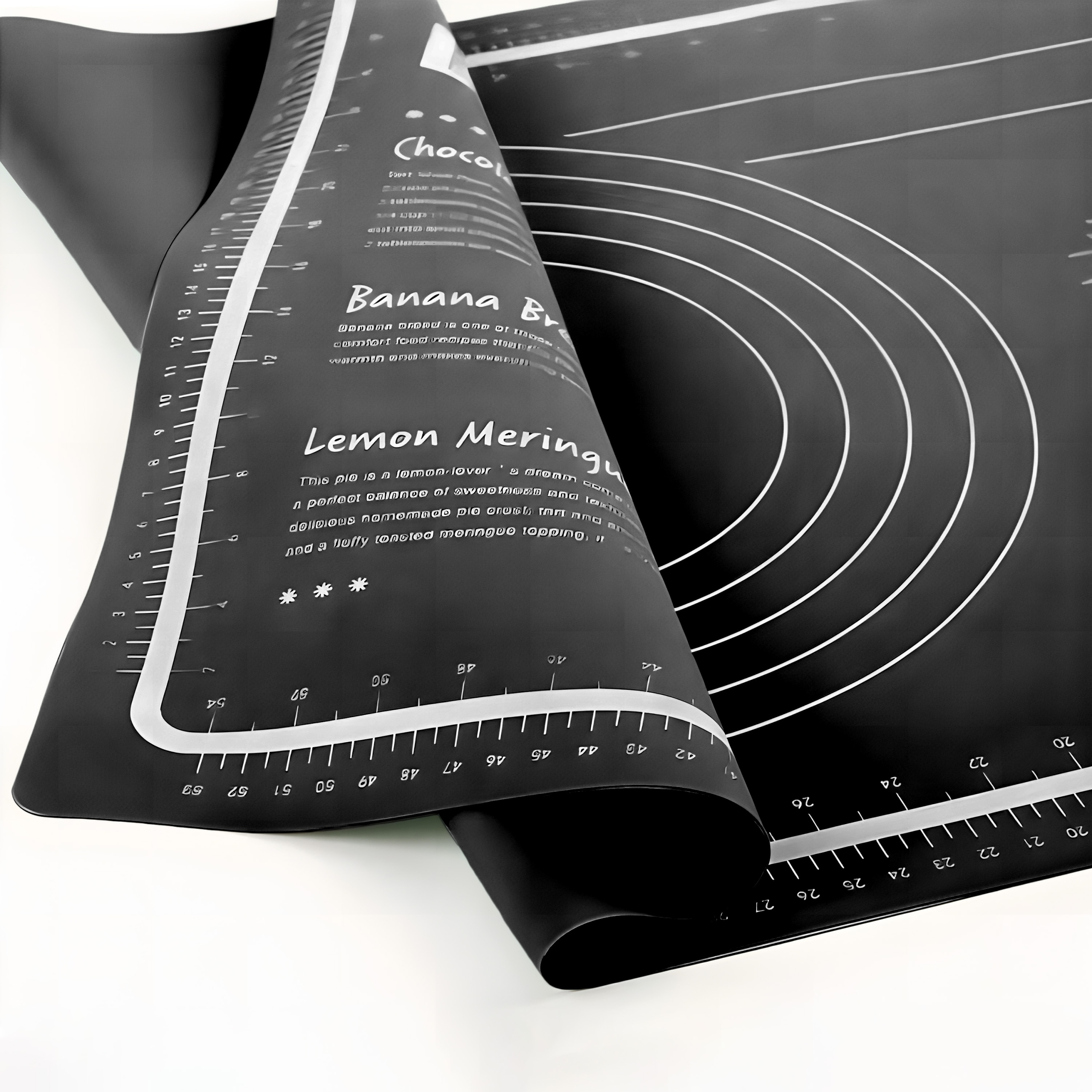Кондитерська дошка оснащена практичними вимірювальними позначками, які полегшують вимірювання відповідних розмірів тіста. Завдяки вбудованим вимірювальним лініям точне розкочування та різання тіста стає набагато легшим. Це ідеальне рішення для тих, хто цінує точність і естетику у випічці. Поділки дозволяють швидко та легко готувати рівні порції тіста.