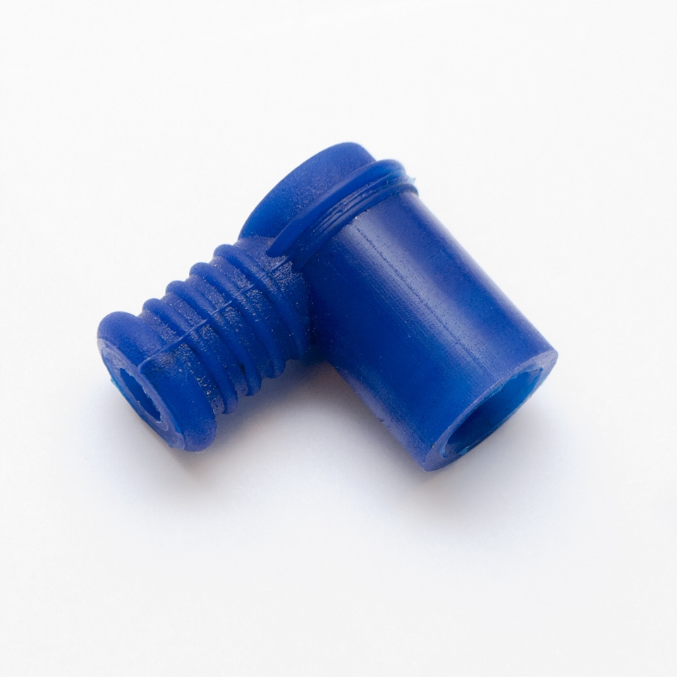 СИЛІКОНОВА ТРУБКА ДЛЯ СВІЧКИ, КОРОТКА, ВОДОНЕПРОНИКОВА, КУТ 90 ГРАДУСІВ, БОЧОК (СИНЯ)