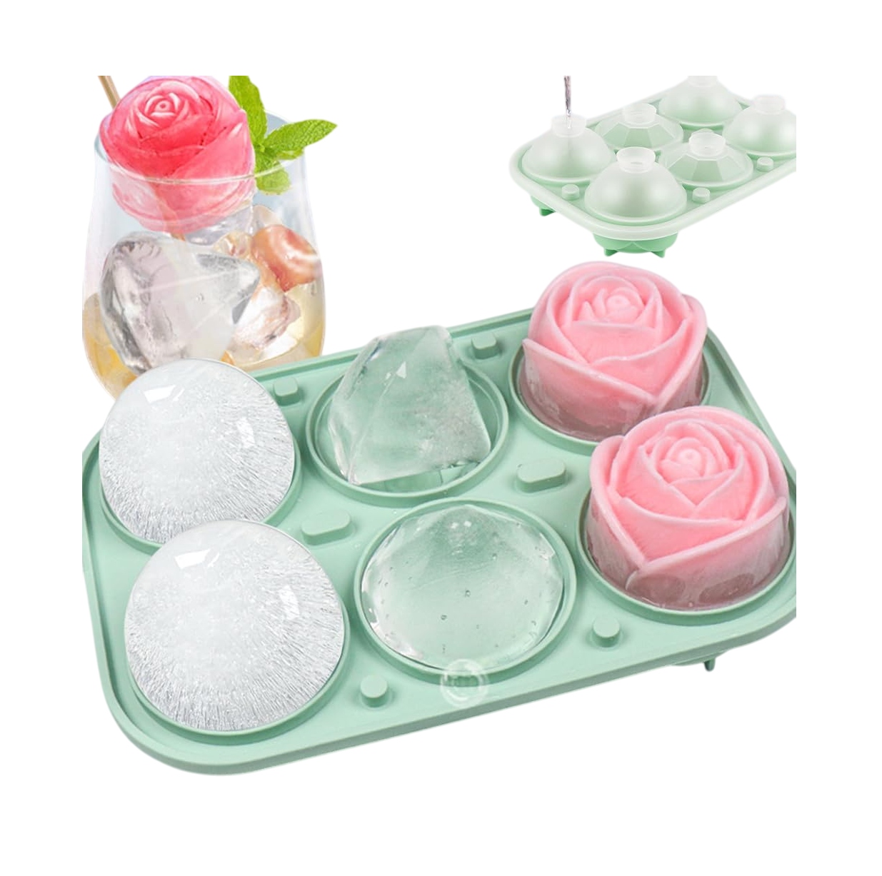 Силіконова форма для кубиків льоду, куля-троянда, діамант