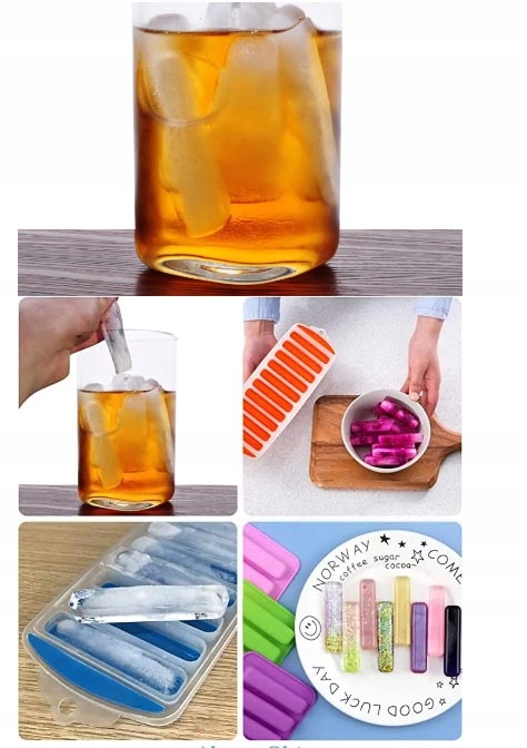 Довгасті кубики льоду можна покласти в пляшку, щоб охолодити воду та інші напої під час подорожі чи пікніка. Їх також можна використовувати як функціональні мішалки для напоїв.