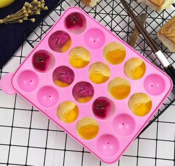 Силіконова форма для випікання кейк попсів. Він оснащений аж 20 отворами у формі кулі разом з отворами для палиць. Він ідеально підходить для випічки завдяки високій теплопровідності, що скорочує час випікання та економить енергію. Він надзвичайно гнучкий і не потребує додаткового змащення.