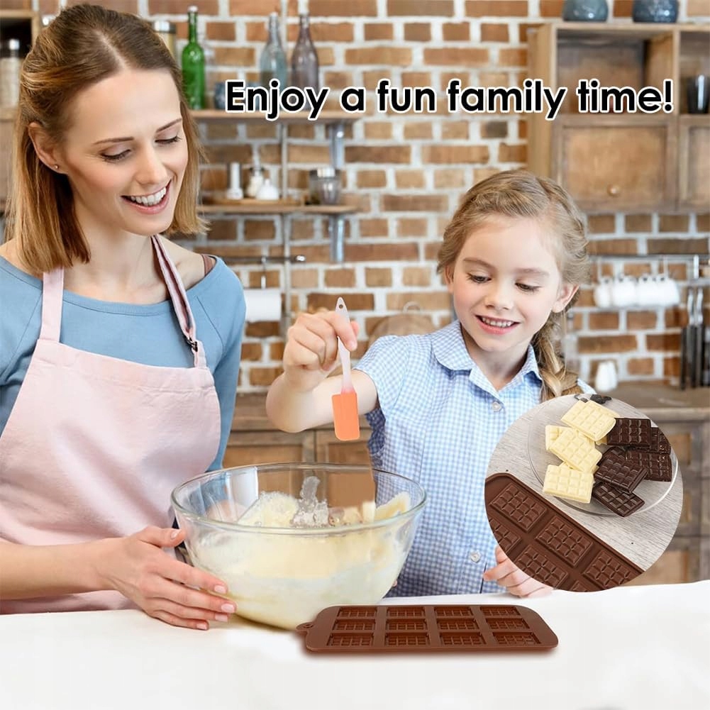 - Коричнева силіконова форма для шоколаду: форми для шоколаду ідеально підходять для приготування маленьких цукерок і шоколаду, а також для приготування тортів, желе та інших страв. Шоколадна форма використовується для затвердіння форми, щоб ви могли готувати чистий шоколад із 12 безперервних форм