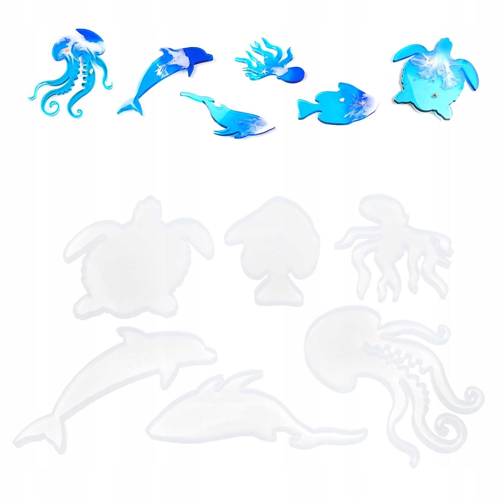 1. 6 різних силіконових форм: кит, дельфін, риба, восьминіг, медуза та черепаха